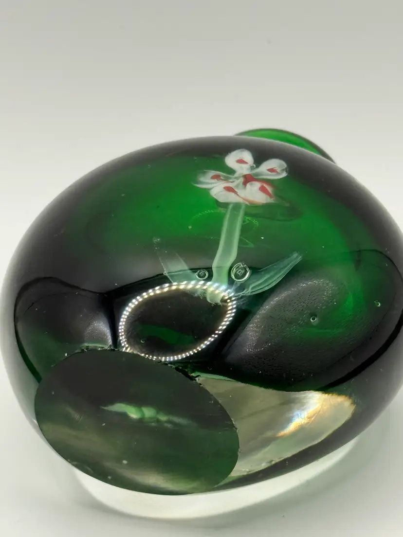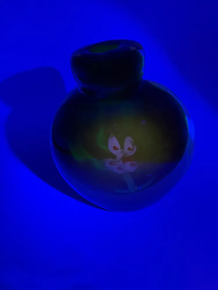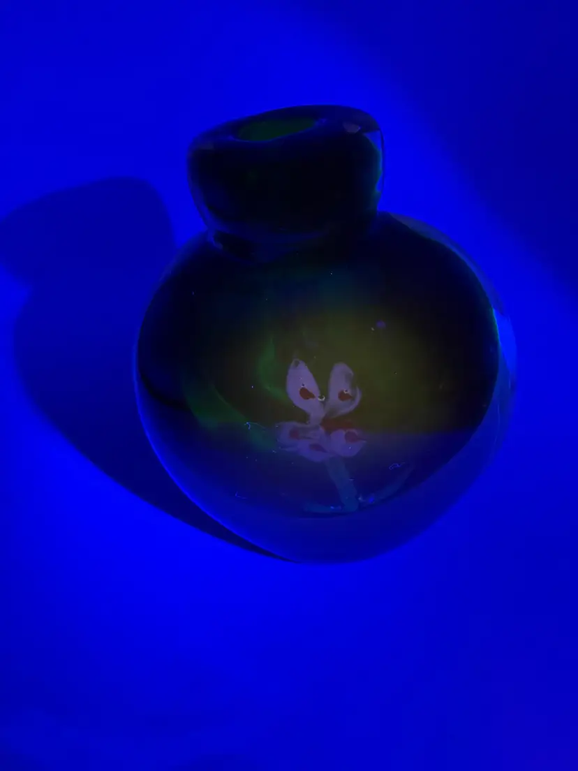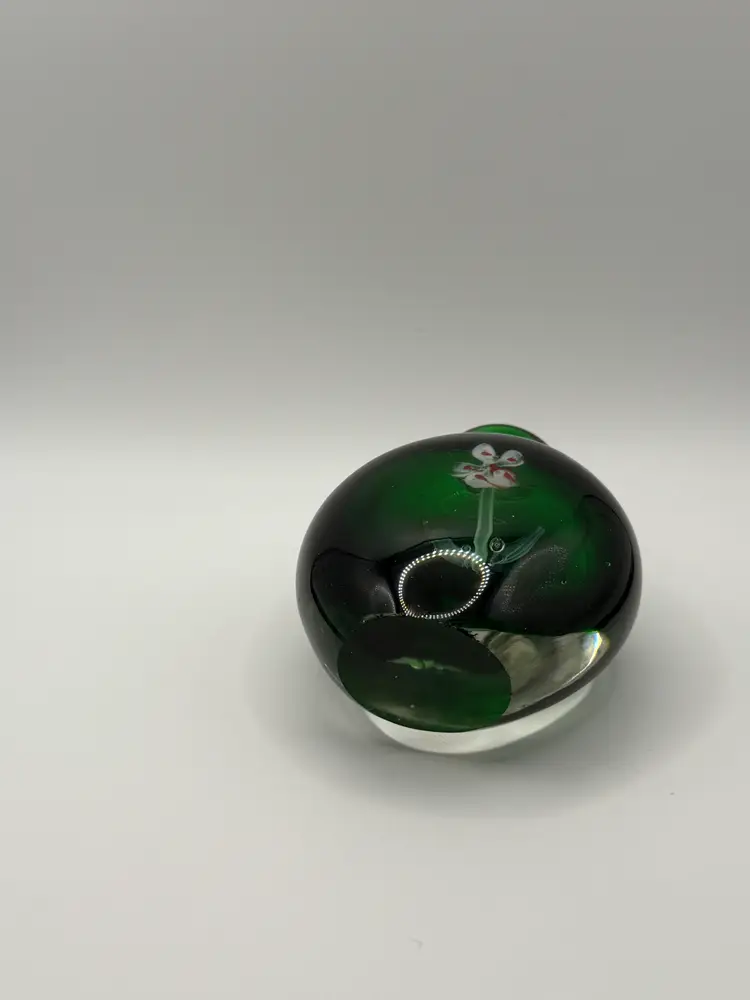 Vintage Green Floral Art Glass Perfume Bottle UV Glow **READ**