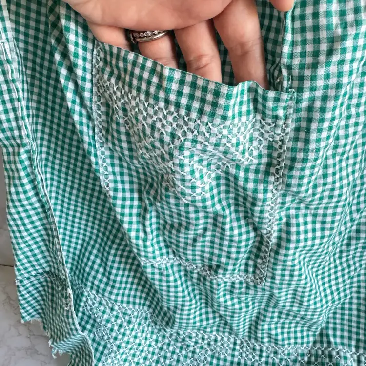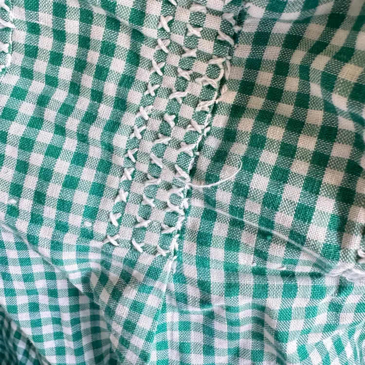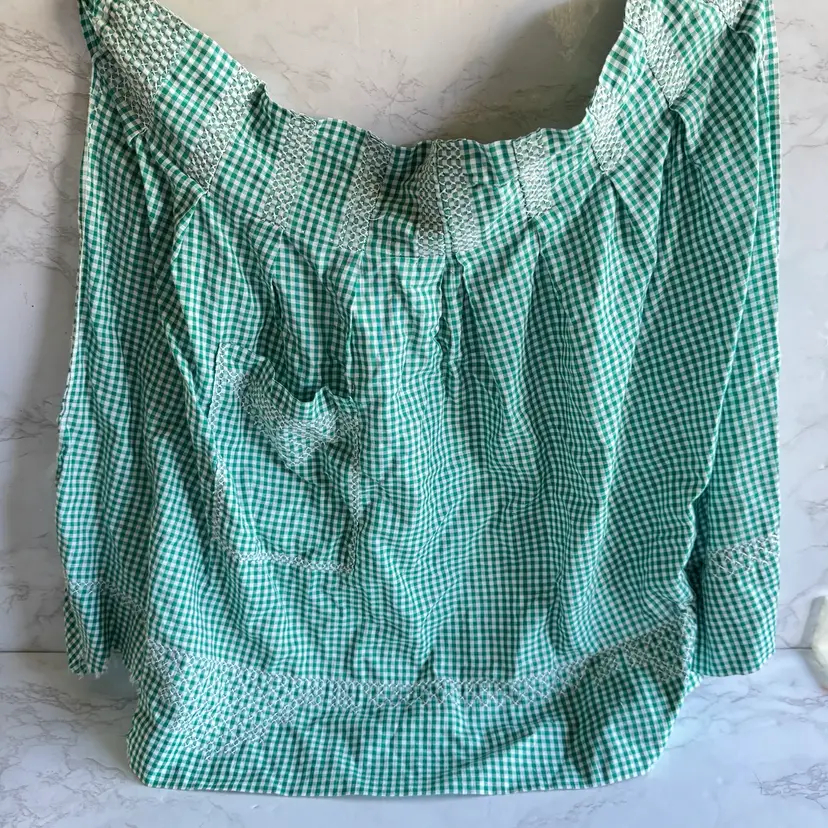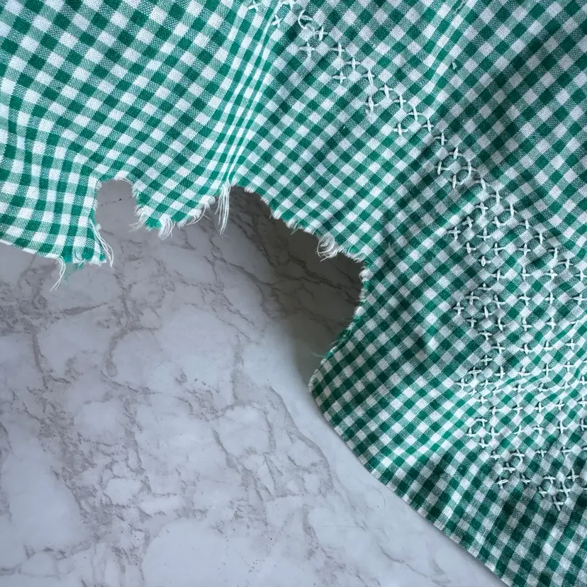 About 76” long ties end to end and 20” long. Has a tear of missing fabric on the corner along with other signs of wear.