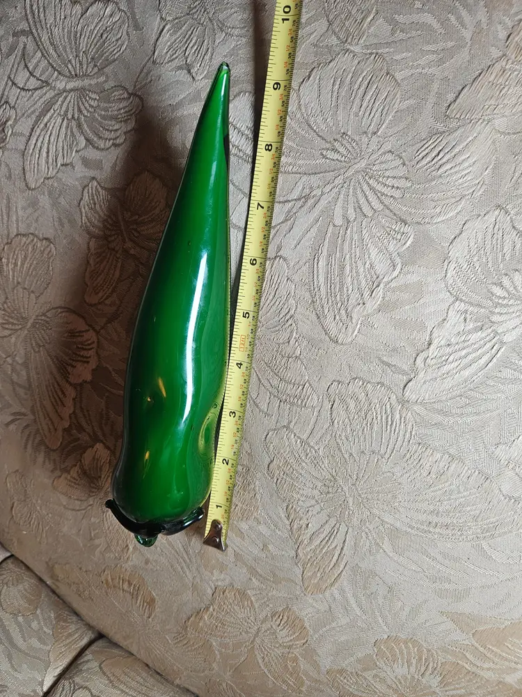 Unique vintage green glass chili pepper figurine. Perfect for adding a pop of color to your kitchen or dining decor. The tip has broken off but it's not much, still usable.