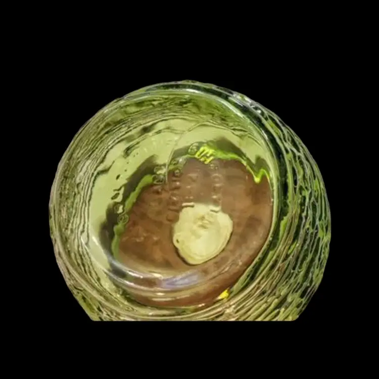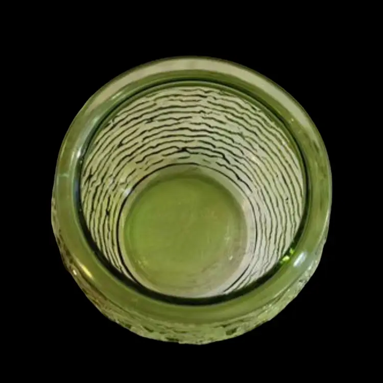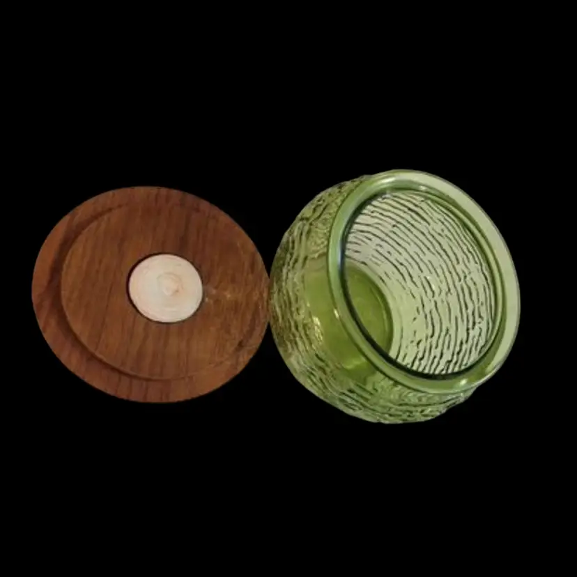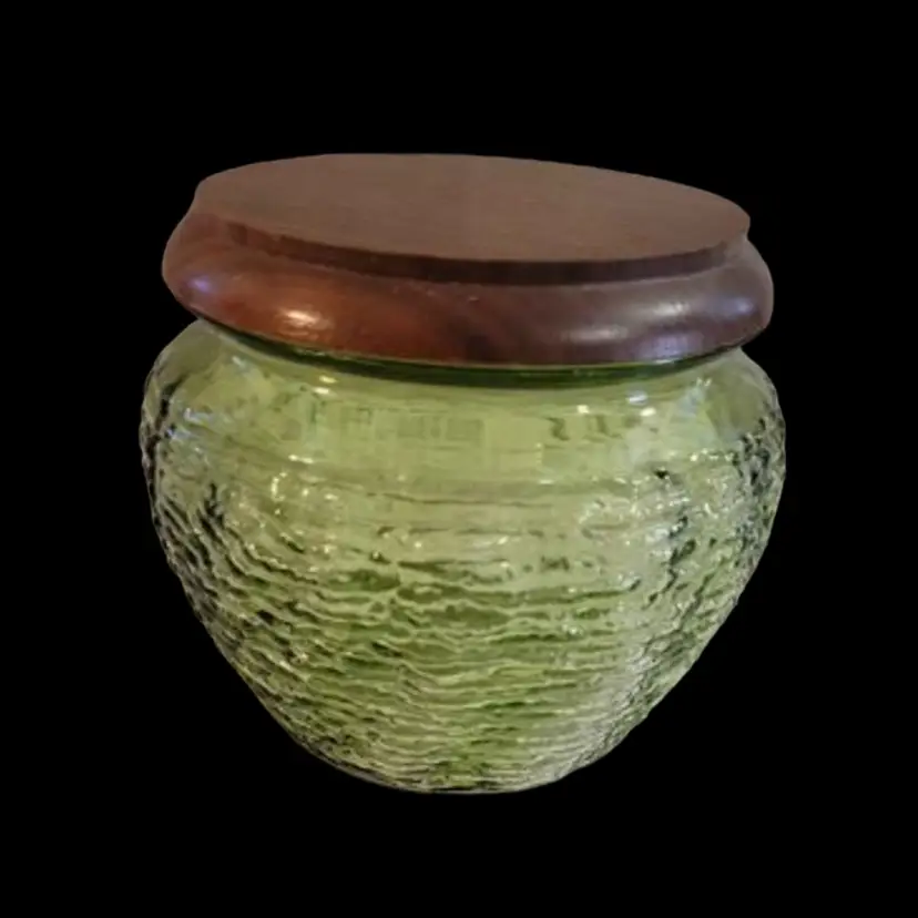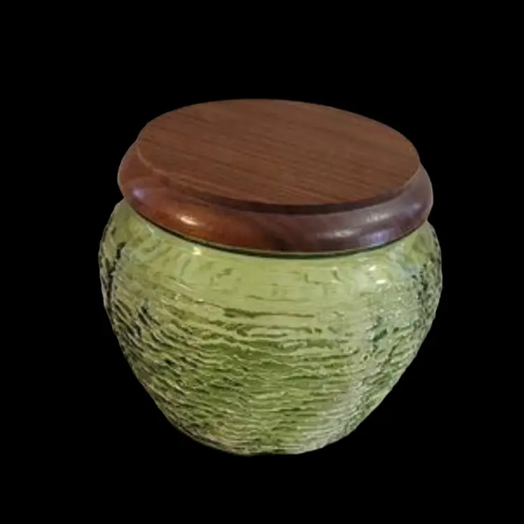 Vintage Green Glass Humidor Jar w/ Wooden Lid National Pottery Glass, Cincinnati OH marking on bottom. In nice vintage condition free of cracks or chips