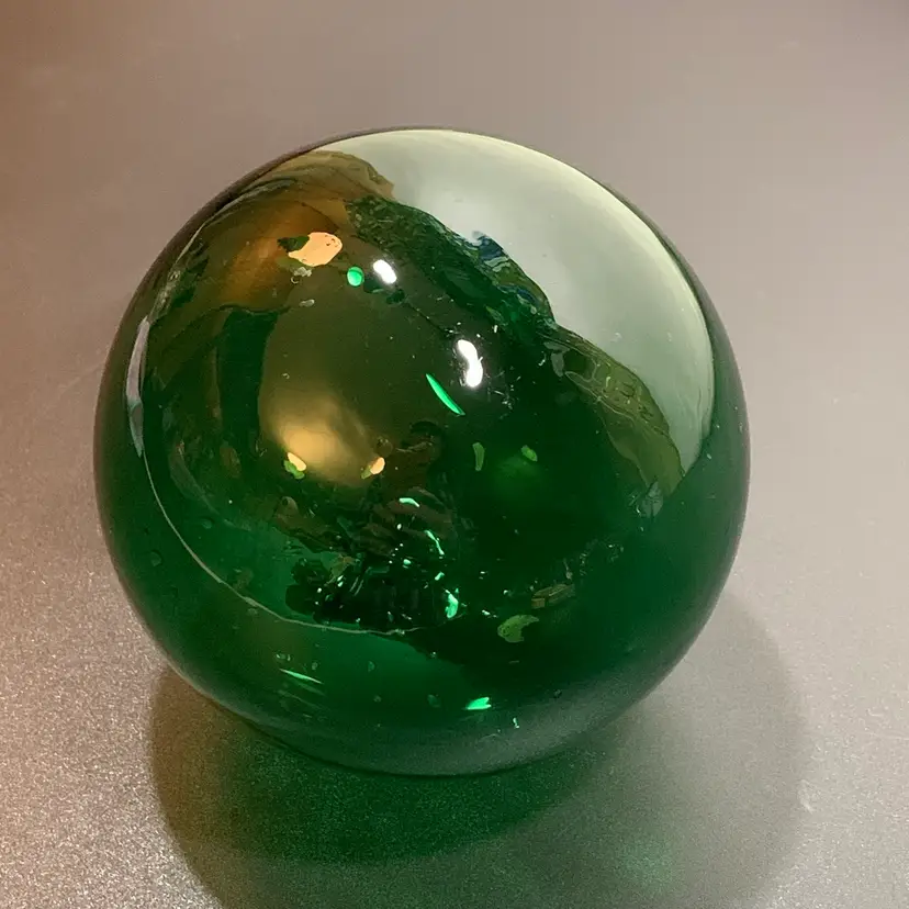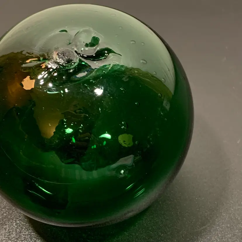 It’s in great condition, no breaks, cracks or chips, it also has wonderful color bubbled inclusions. Nice float 4“ x 4“.