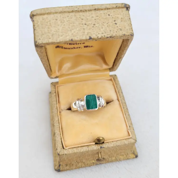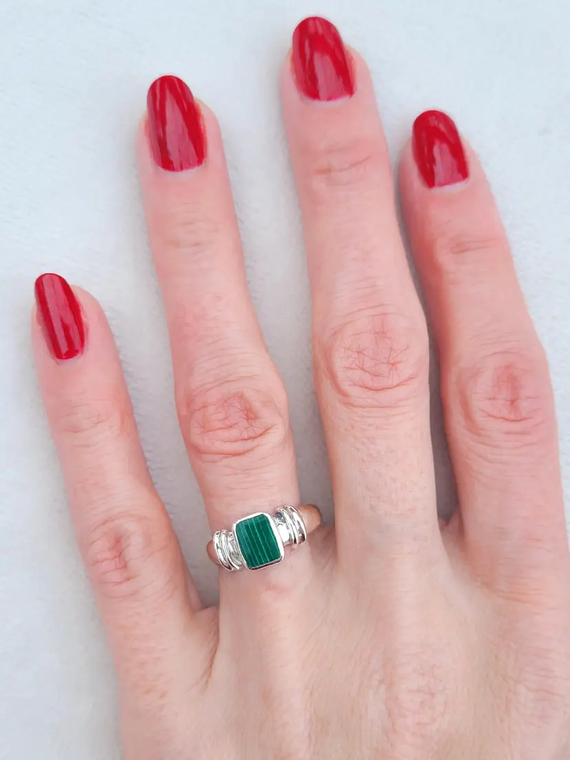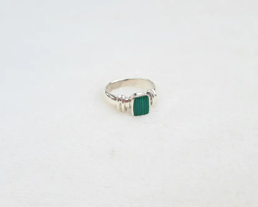 Lush green malachite sterling silver ring from an estate, circa 1990s. It is in good condition, please see pictures for details. Does not include my ring box.