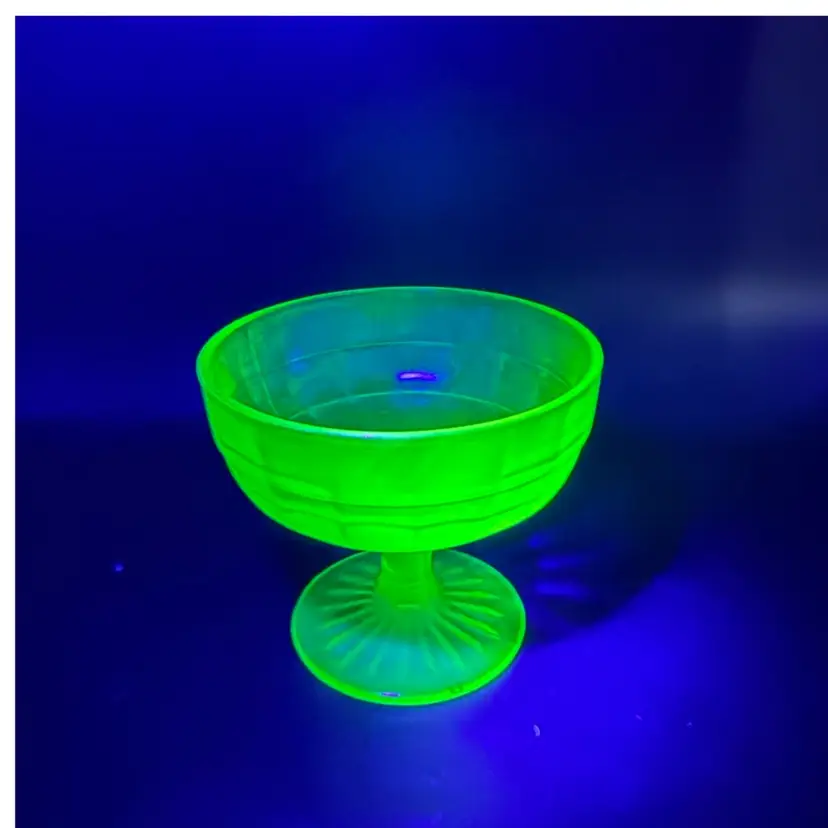 Uranium glass, often referred to as Vaseline glass due to its characteristic yellow-green hue and tendency to glow under ultraviolet light, contains a small amount of uranium oxide. This addition not only gives the glass its unique color but also causes it to fluoresce brightly. While the uranium content is minimal and considered safe, its presence makes these pieces highly collectible and sought after by enthusiasts.