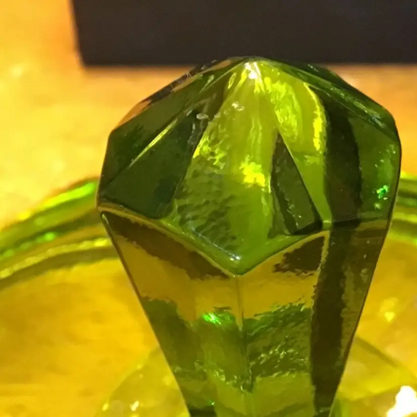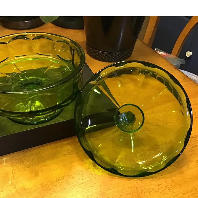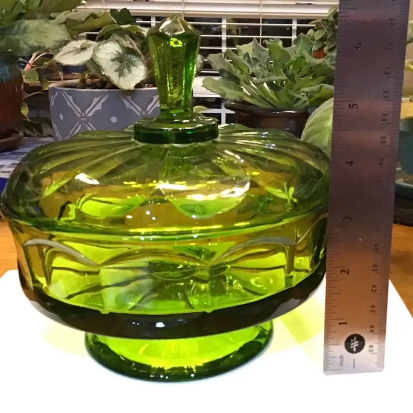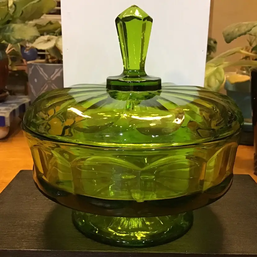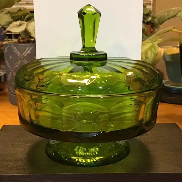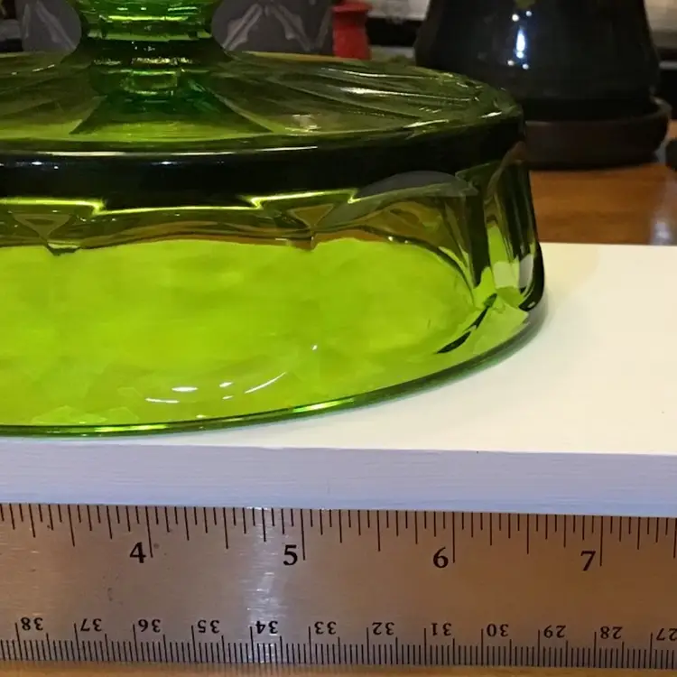 This beautiful green Viking dish is in excellent condition. No chips, cracks, or repairs. There is a very tiny imperfection on the steeple/handle which is in the pictures. Size is in the pictures. See all pictures as they are an important part of the description. Don’t miss your chance to own this beautiful glass dish.