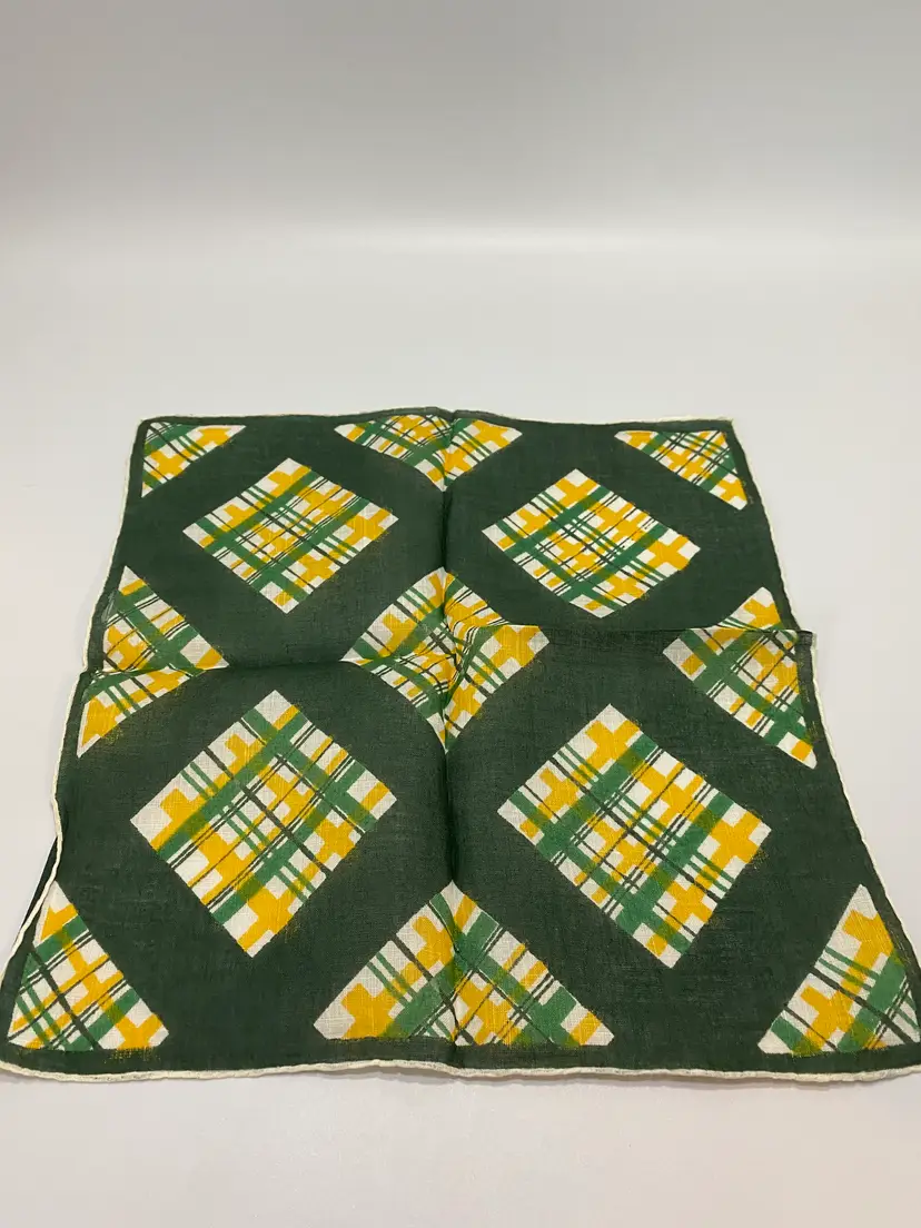 PLEASE READ: Vintage scarves/Hankies can show signs of wear(runs, loose threads etc) or discoloration consistent with age and use. Please look at the pictures carefully and enlarge. All are second hand purchases so they could need cleaning (we do try to clean pieces when we can). Any questions or requests of additional photos are welcome! Please give at least 24 hrs business days for response.