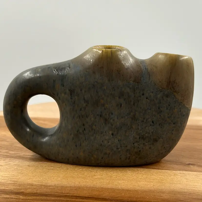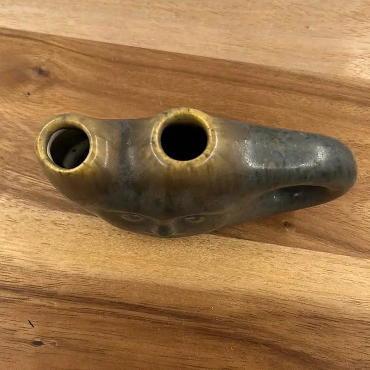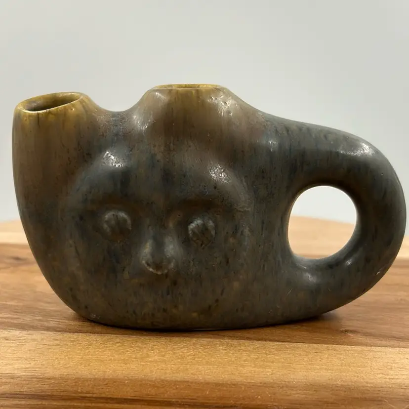 Vase/Candle holder has a little paint skip on the handle and some light scratches 3” T 4.75 L 1.5 W