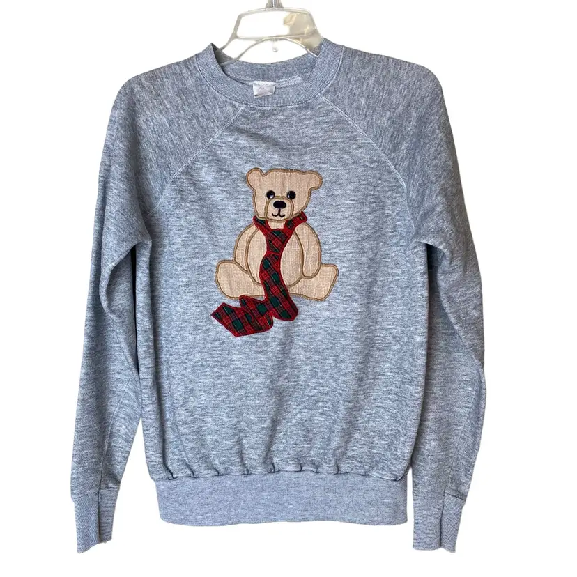 Vintage grey crewneck sweatshirt teddy bear with tie size large