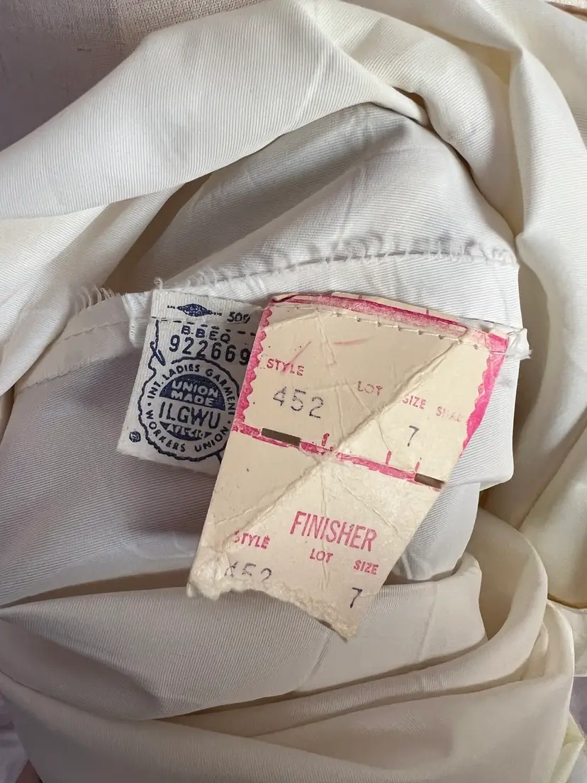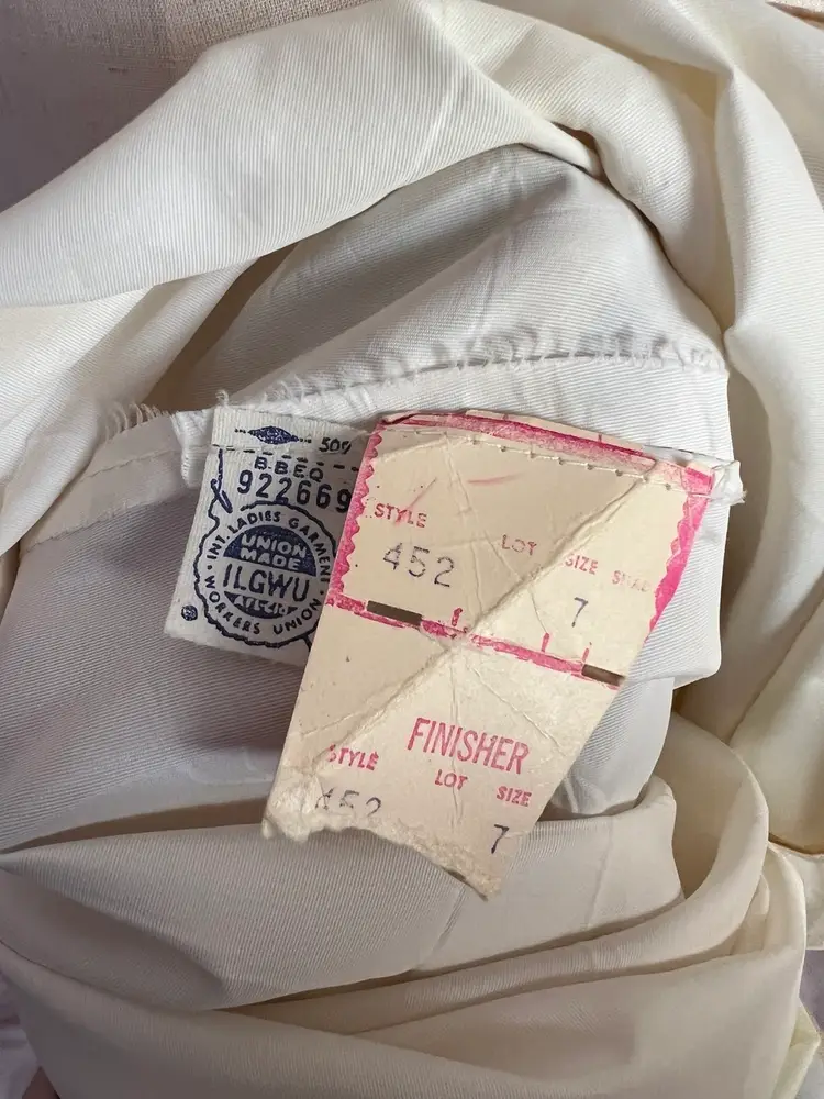 - Overall it is in good condition for its age BUT it does have some underarm discolorations and discolorations along the hem of the skirt.