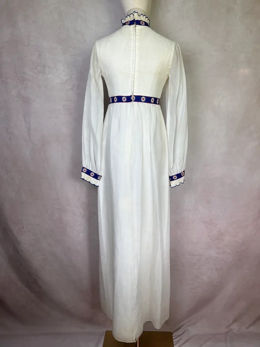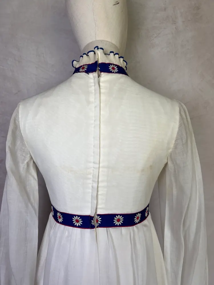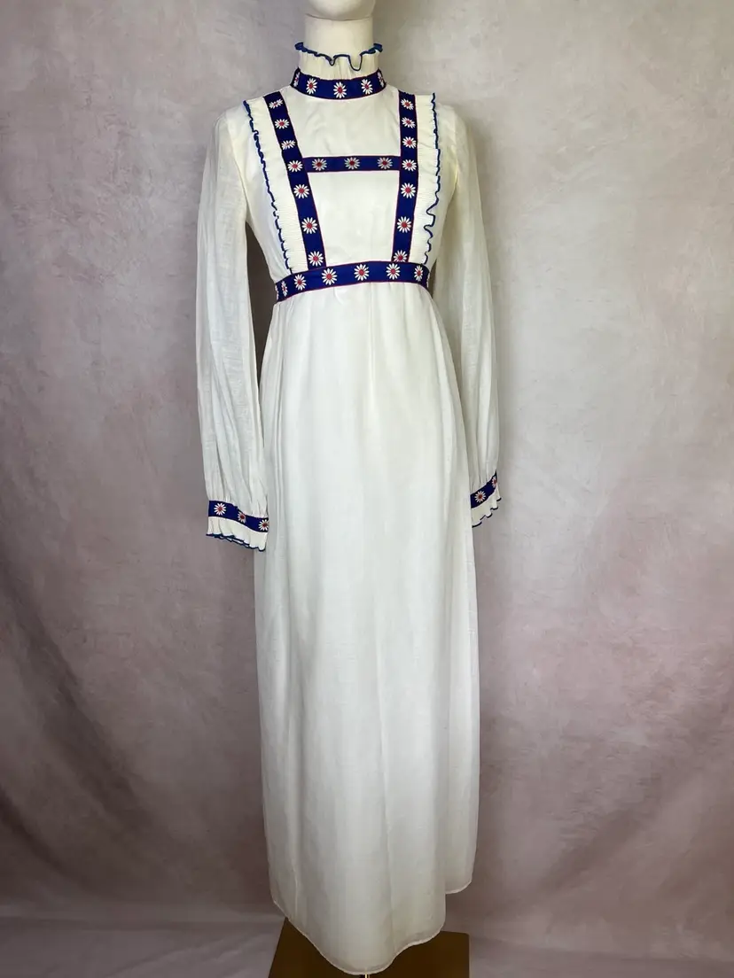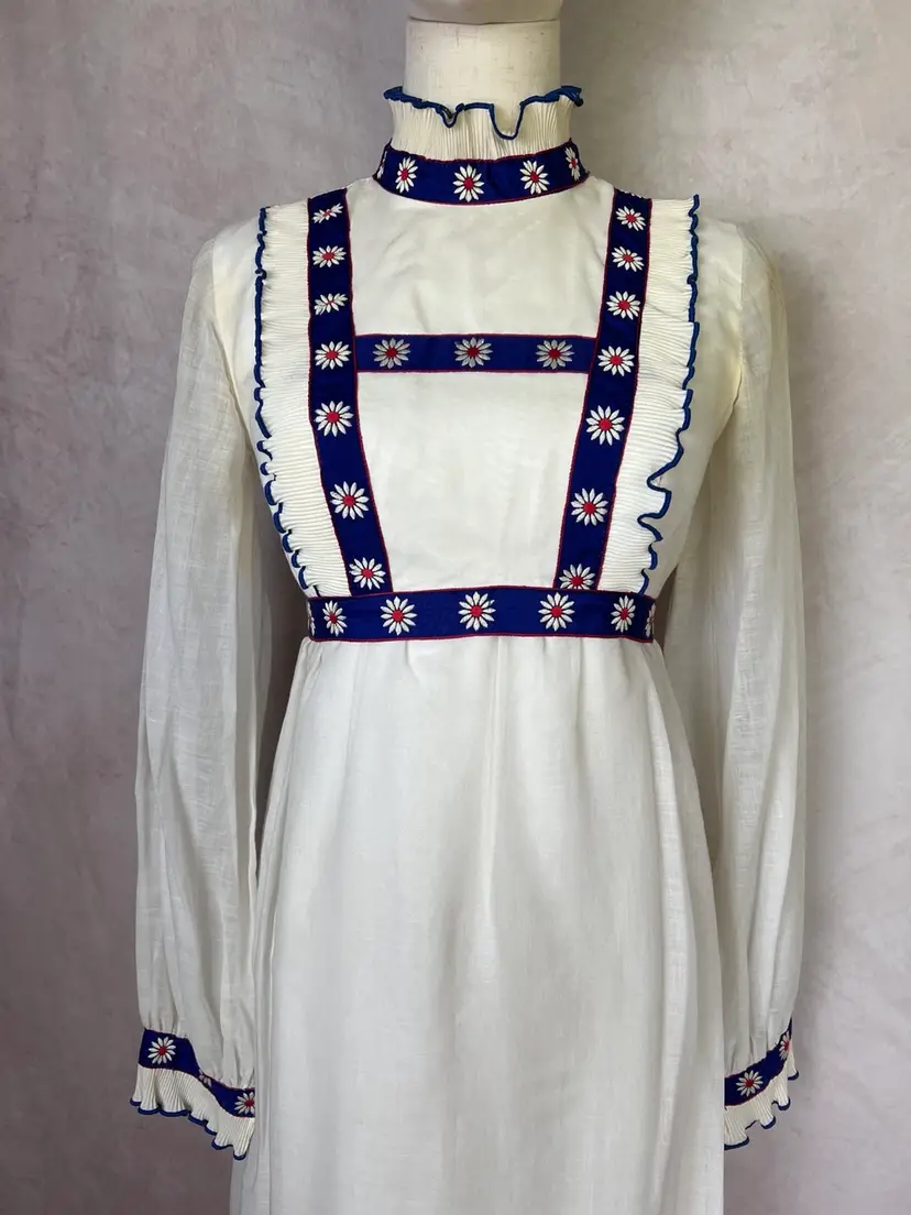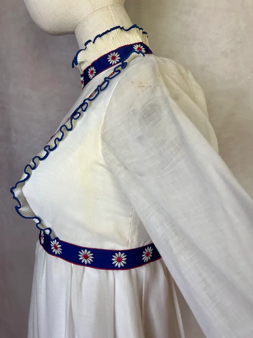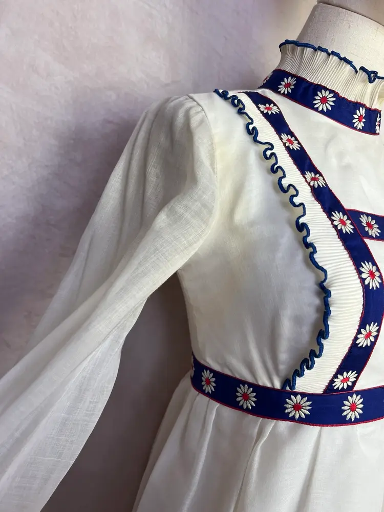 - Beautiful vintage prairie style dress. White base with red and white floral accents