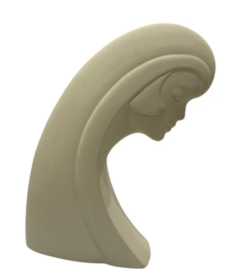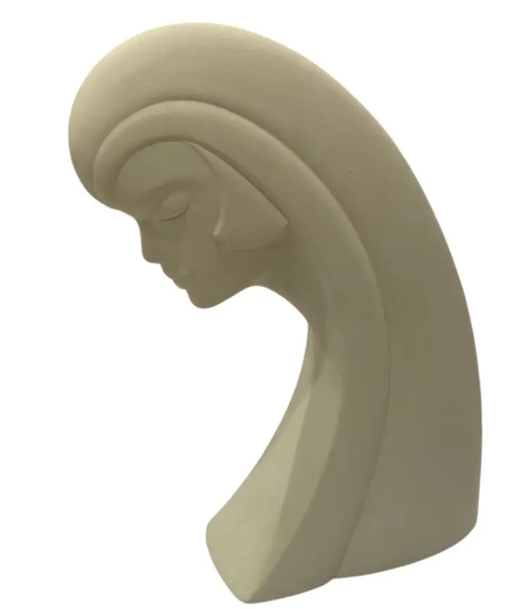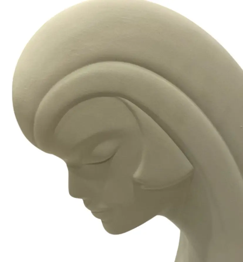 The Vintage Haeger Ceramic Virgin Mary Head Sculpture is a large 19 1/2" tall bust statue made in the United States in 1985. This Art Deco style sculpture is crafted from white ceramic and has been painted a light mint green, showcasing intricate details and a classic design. With a weight of 5 lbs and 13 oz, this collectible item serves as a beautiful and timeless decorative piece for any space. No chips! See pictures for beauty. Message with any questions!