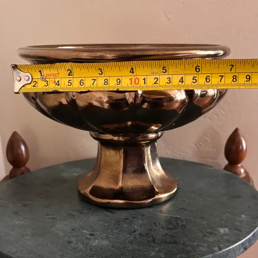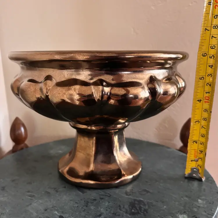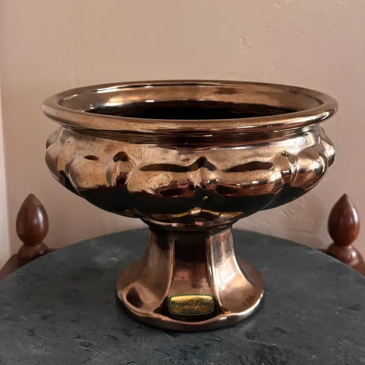 Magnificent metallic planter made in USA 6”tall x 7”wide Vintage wear and scratching as shown- no chips or cracks
