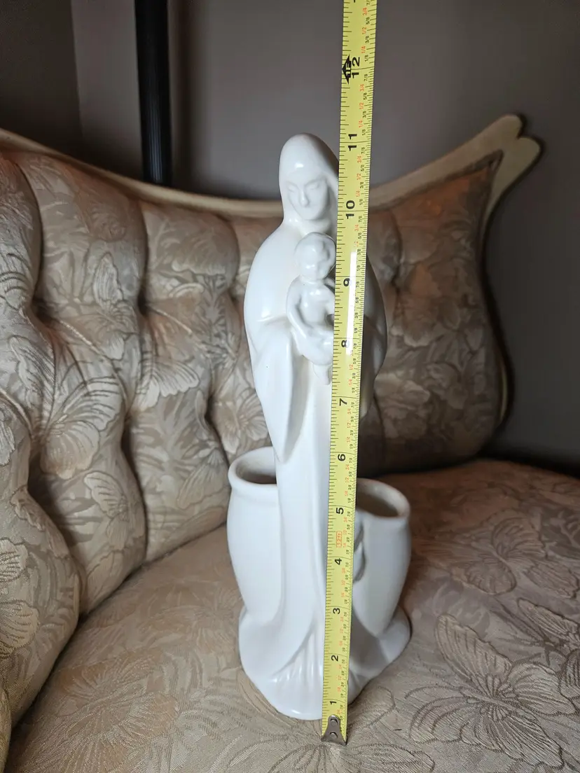 Beautiful vintage Haeger ceramic planter featuring Madonna and Child. Perfect for adding a touch of serenity to your home decor. No chips or cracks. Measures approximately 11.25" tall.