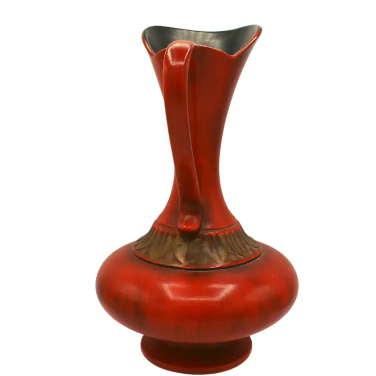Vintage Haeger Pottery Red Matte Grecian Ewer Pitcher Vase with Gold Accents – Mid Century Modern Pottery