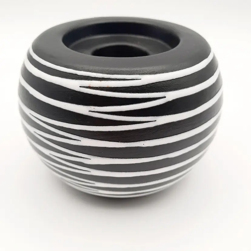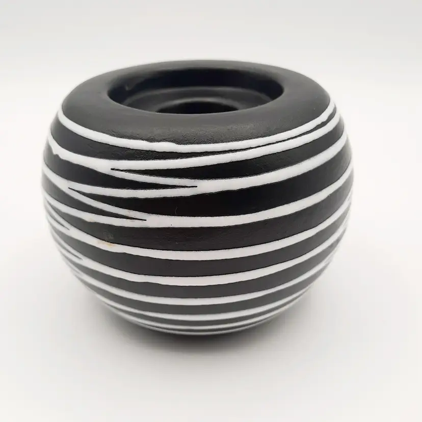3 1/4"H x 4"W in excellent condition, has remnants of the original Haeger label. I have the matching Haeger pitcher listed also.