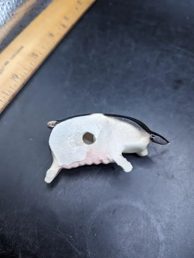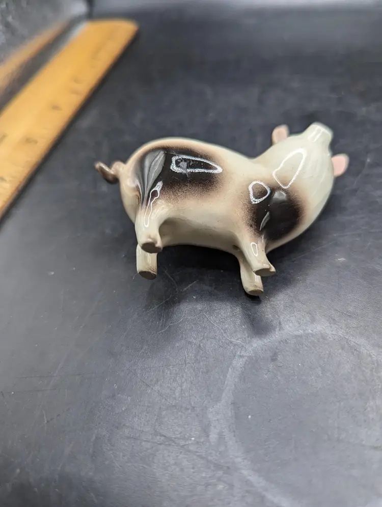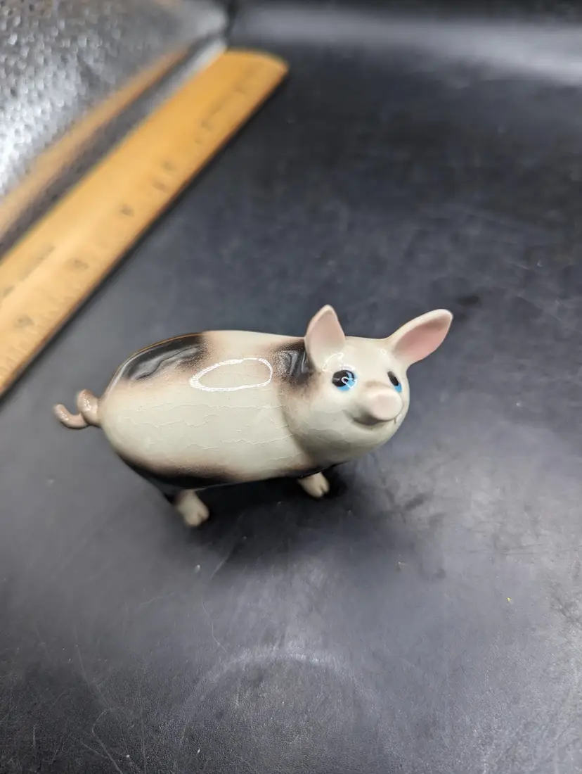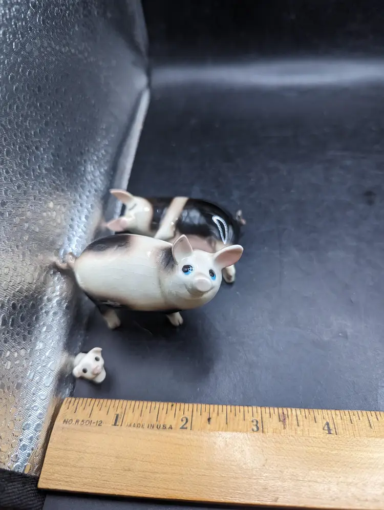 This is a lovely Vintage Hagen Renaker Papa Pig, Mama Pig And Baby Pig Family. The Papa pig is standing. The mama pig is laying down ready to feed her baby. The baby pig is just hanging out. No chips or cracks. Please see all pictures for condition.