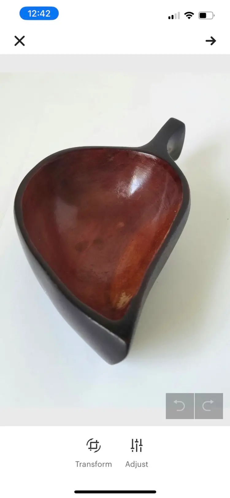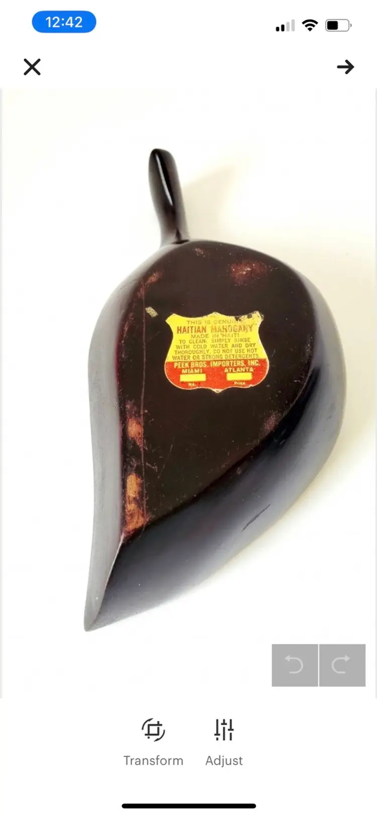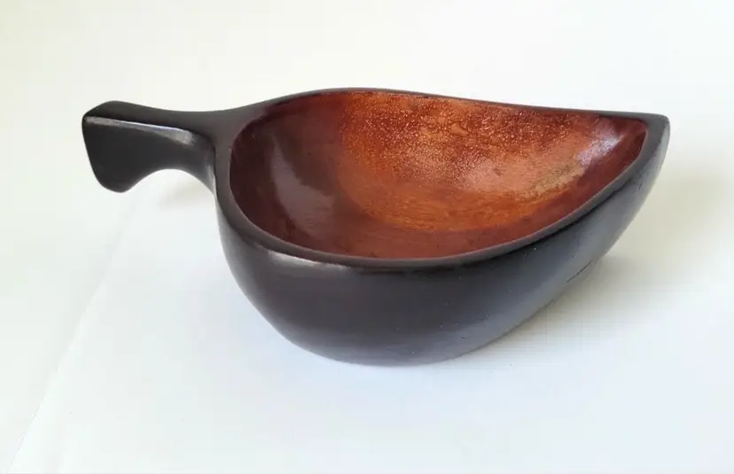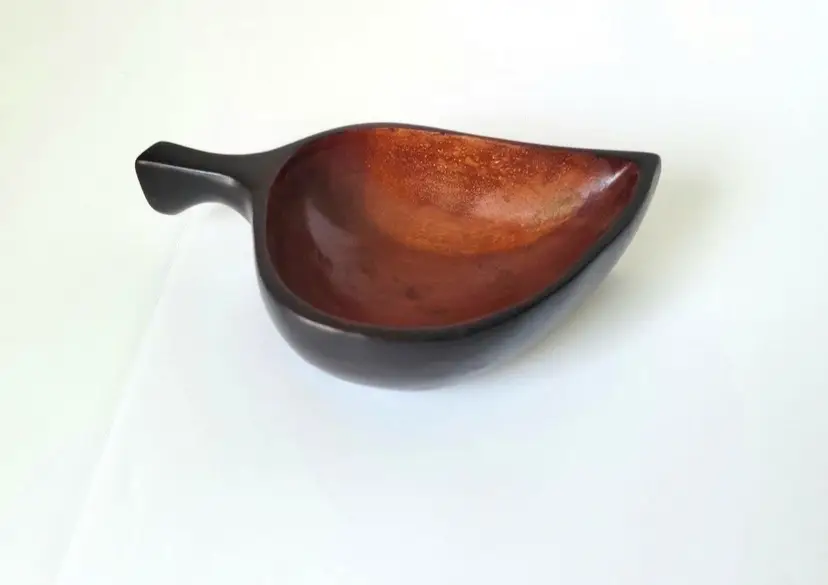 Vintage Haitian mahogany leaf shaped wooden bowl/nut dish/serving dish/candy dish. Vintage condition, as seen in photos.