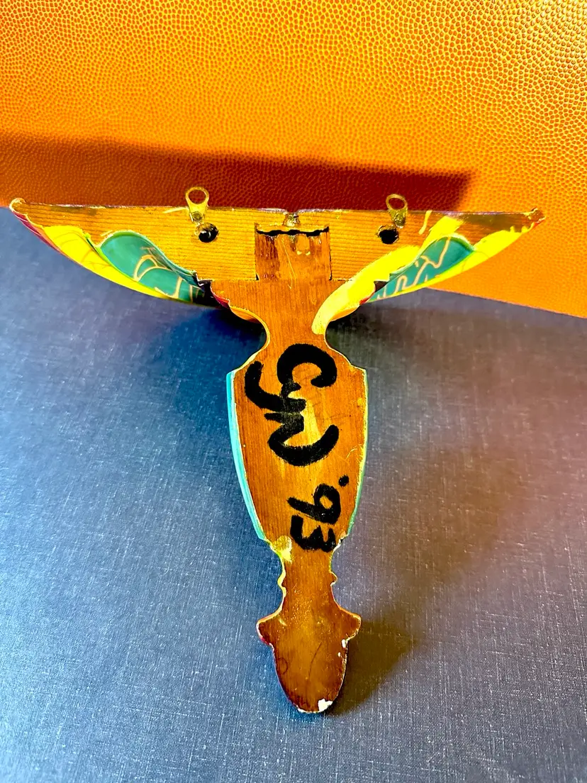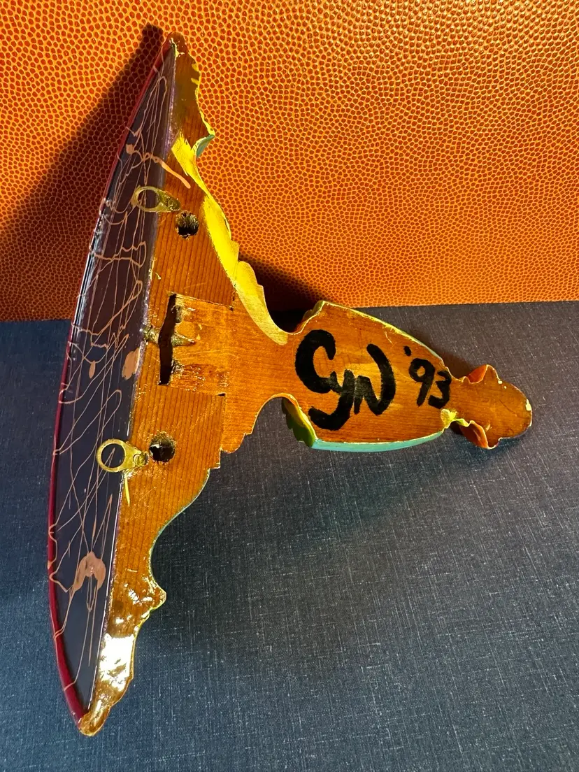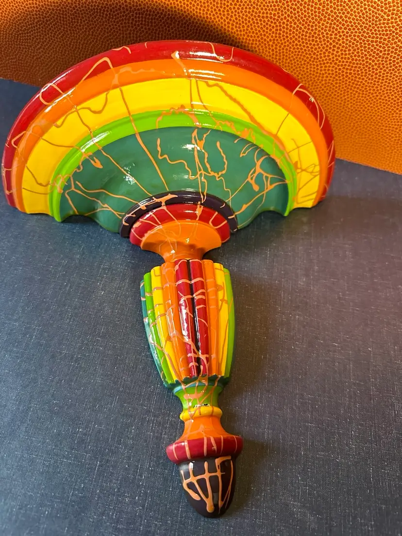 Amazing deluxe enamel painted wood half shelf signed dated. Half circle wall decor for smalls display π 9β x 9β curio shelf