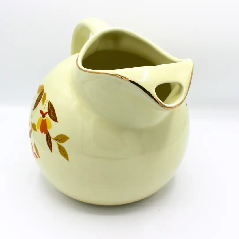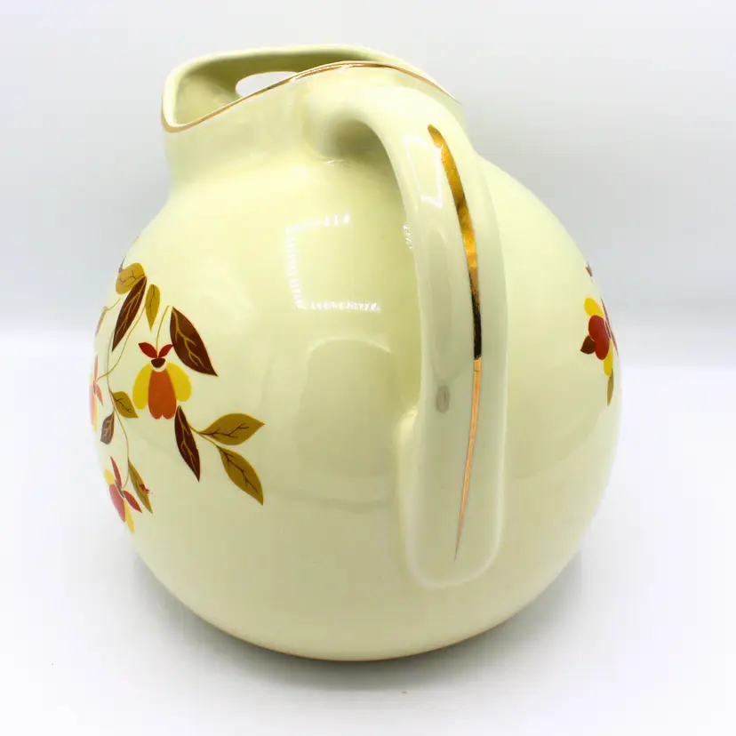 Vintage Hall Ball Pitcher – Autumn Leaf Pattern, 10 Cup Capacity, Gold Trim, Halls Superior Quality Kitchenware, Circa 1940s