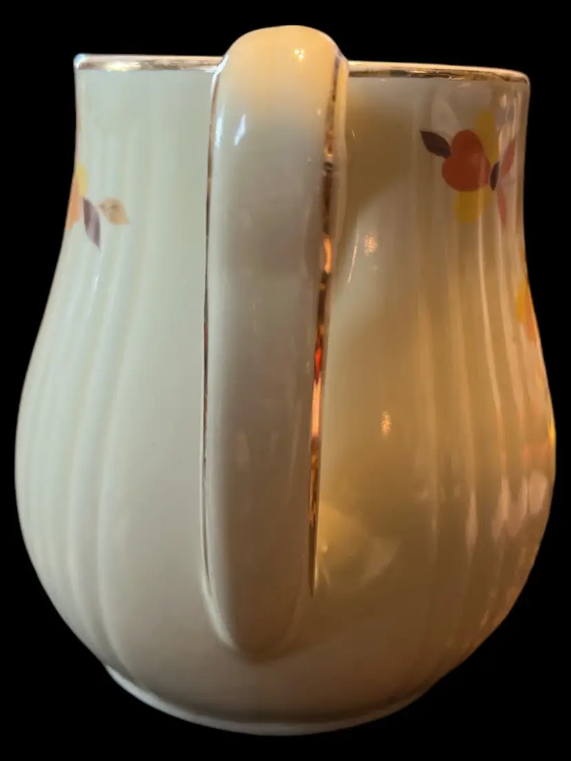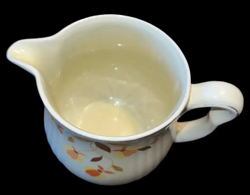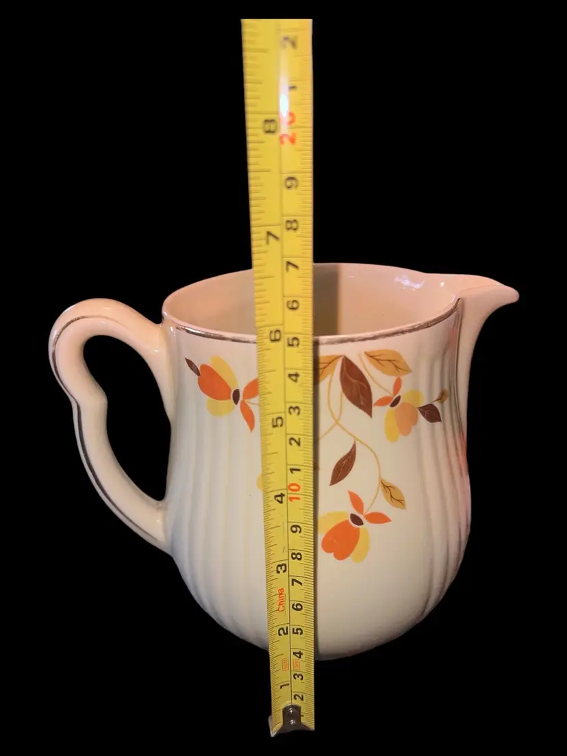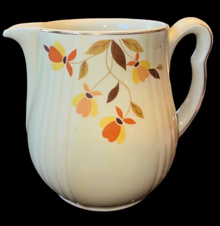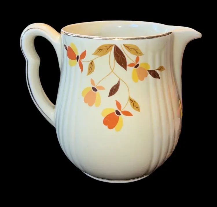 Add a touch of vintage charm to your tea party with this beautiful Hall Autumn Leaf Jewel Tea Pitcher. The ivory color and floral pattern of this mid-century modern style pitcher make it an ideal addition to your decorative cookware. It is easy to fill and has handles for easy transportation.
