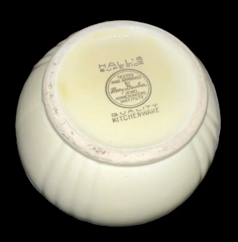 This original vintage piece is made of ceramic and has a printed backstamp. It weighs 1#8.8 ounces and measures 6" tall by 7" wide. Hand wash only is recommended for this pitcher, which has a capacity that is unknown. The Hall brand is known for its quality art pottery, and this pitcher is no exception. It is perfect for serving tea or coffee and will surely impress your guests.