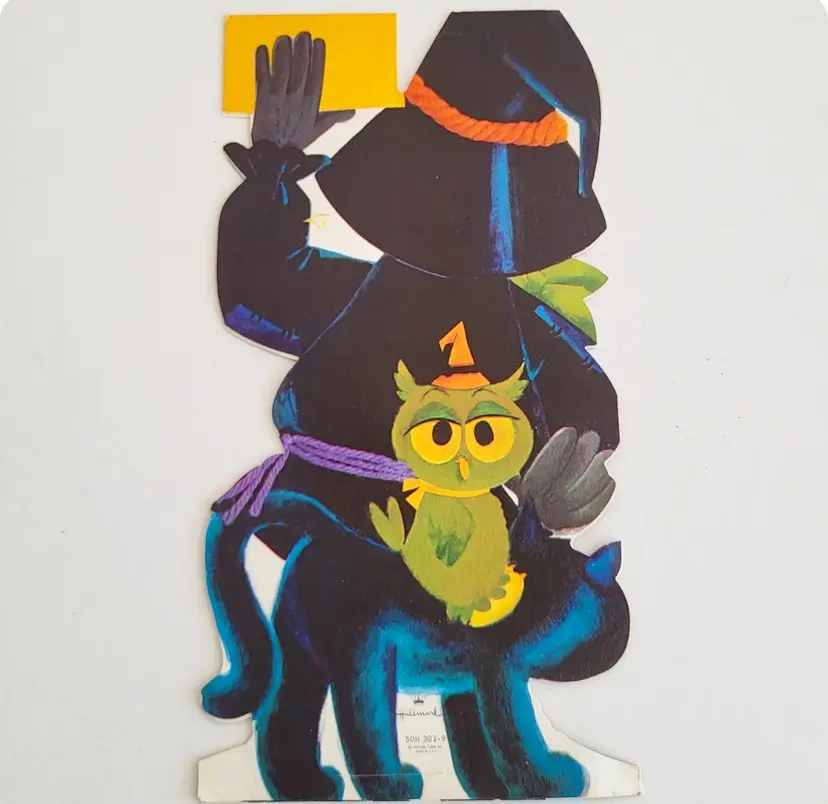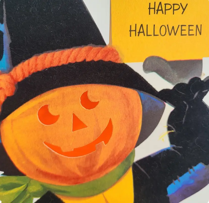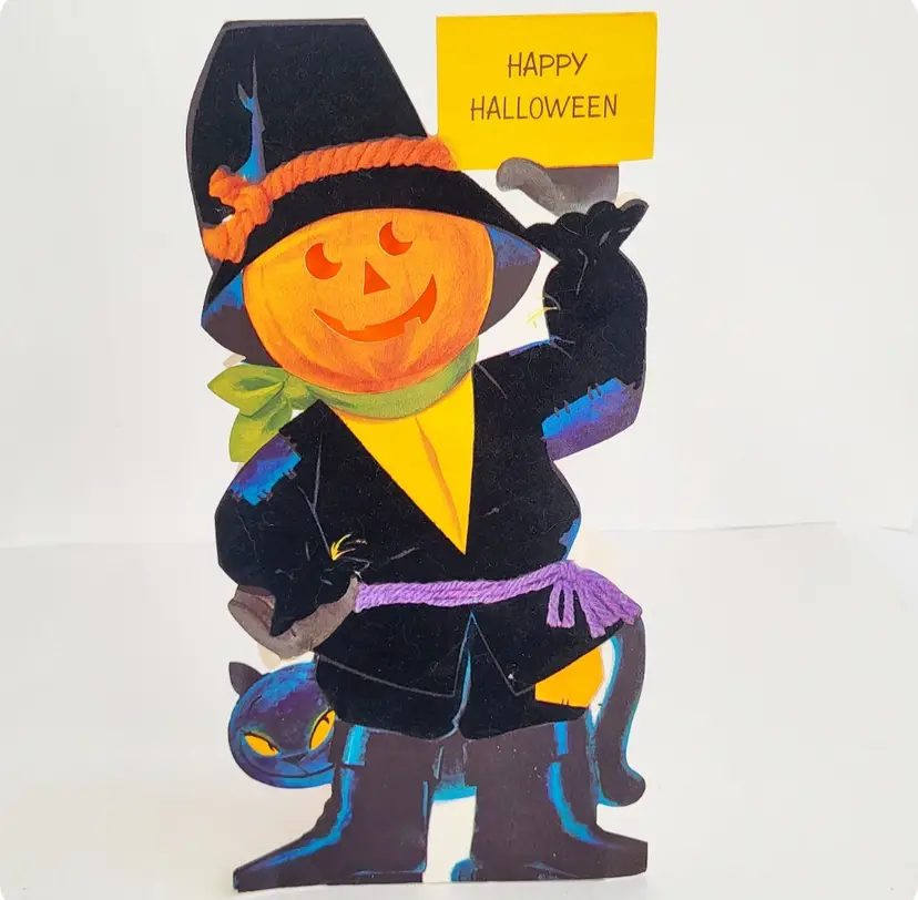 Vintage Hallmark Halloween oversized flocked tent greeting card. Not used. Tab on the bottom so it can stand. Measures 11 in x 5.5 in. Will ship flat between cardboard.