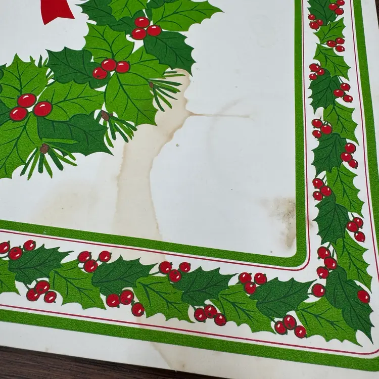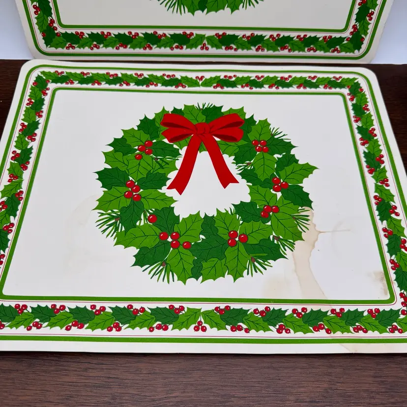 One is in excellent condition, one has stains and is damaged. A little over 14” x 11”