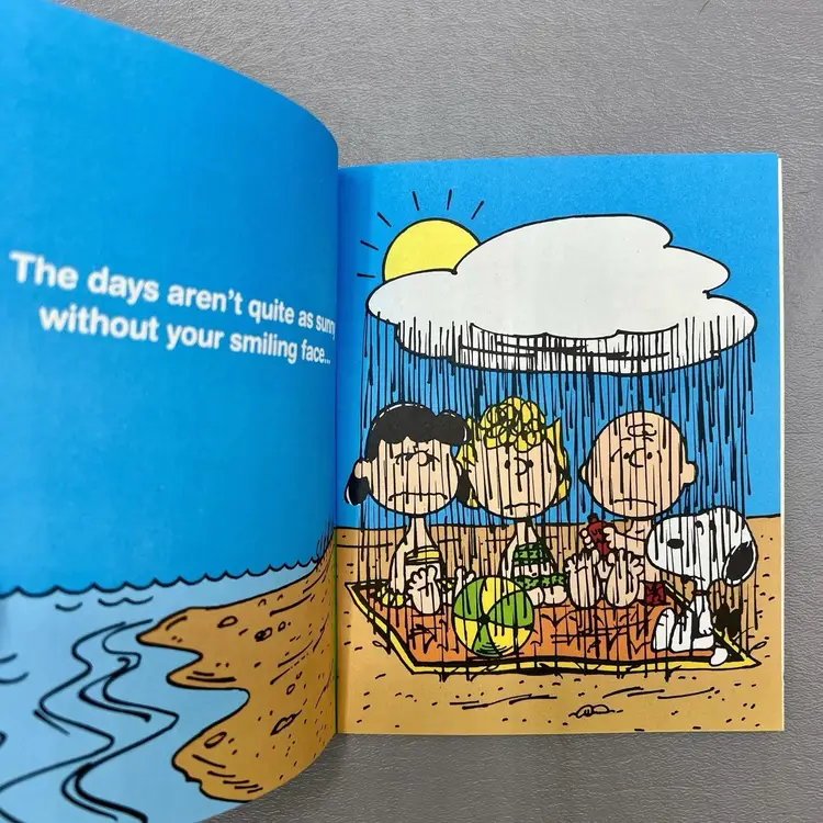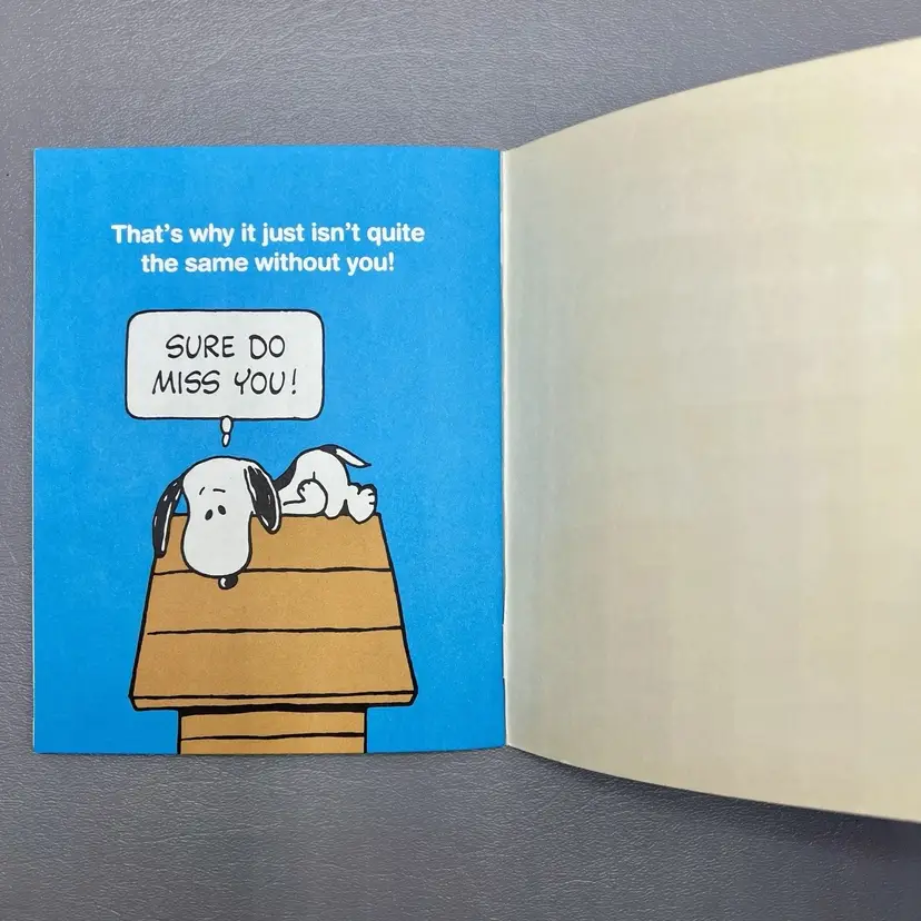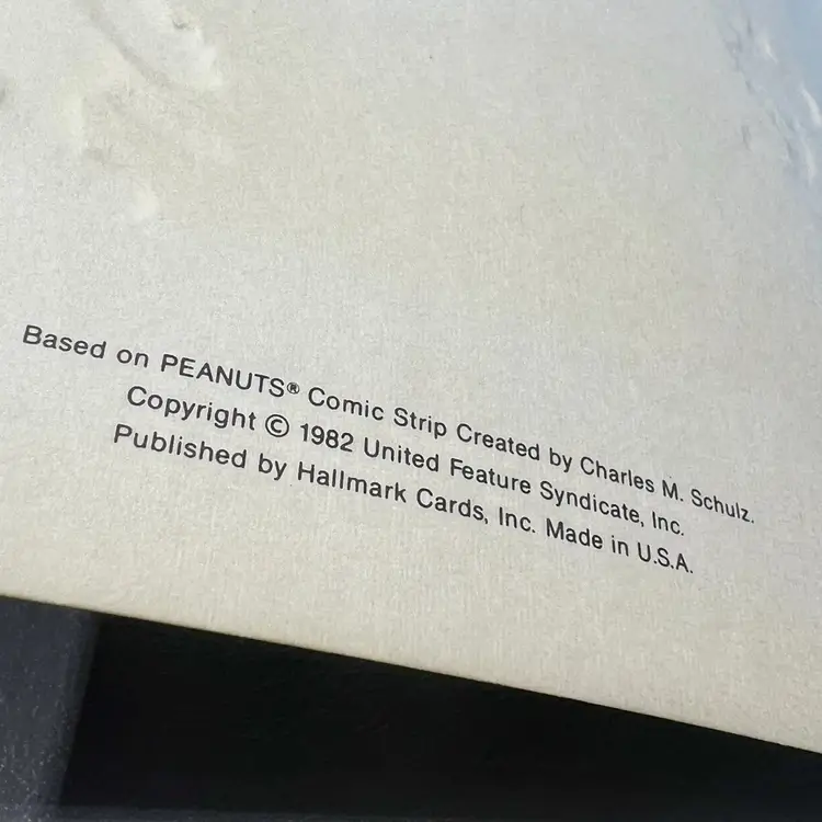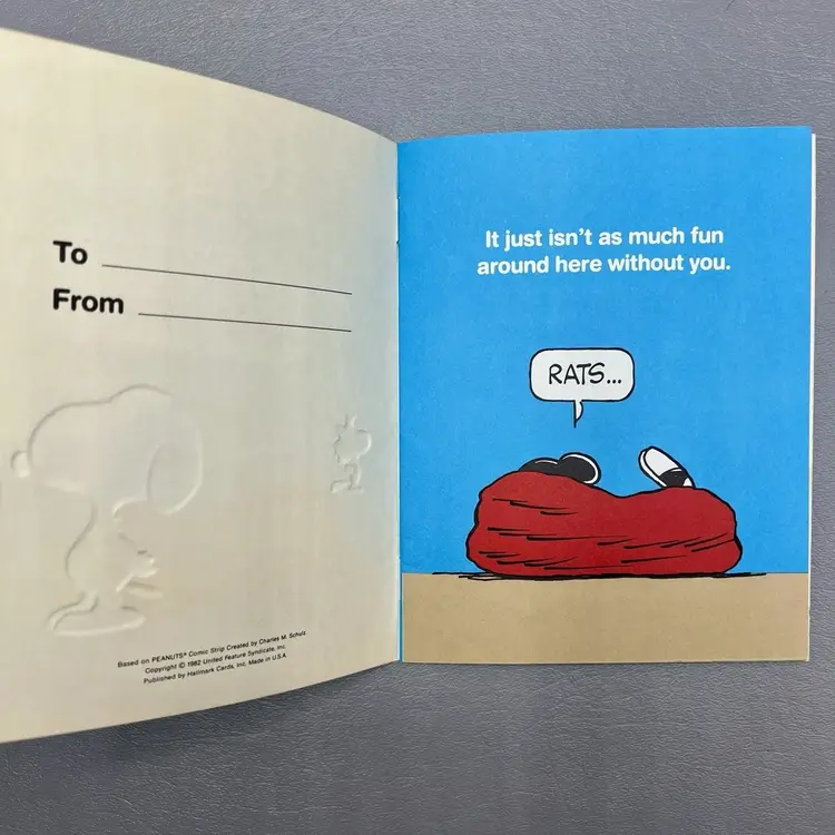 Vintage Hallmark Snoopy Wish You We’re Here Greeting Card Peanuts 1982 Booklet Woodstock Features 8 pages with several Peanuts characters like Charlie, Lucy, Schroeder, Peppermint Patty and Sally.