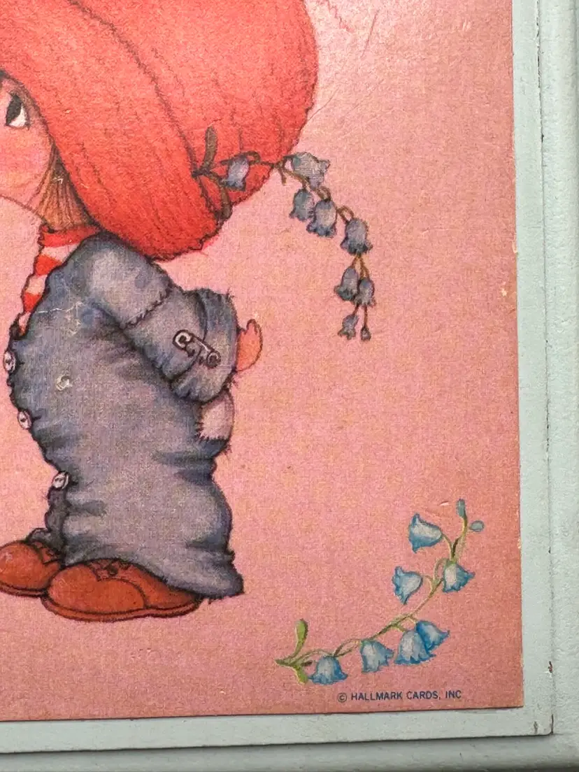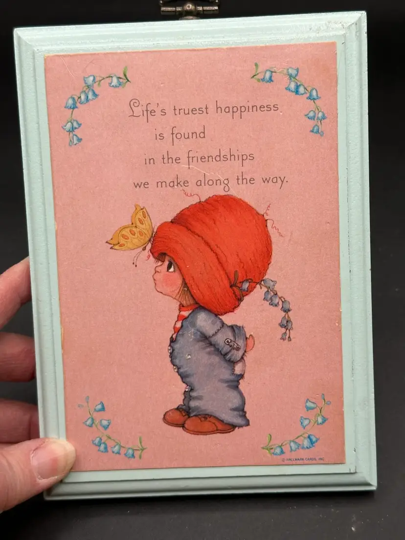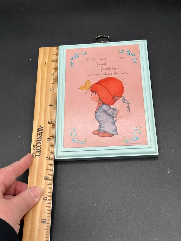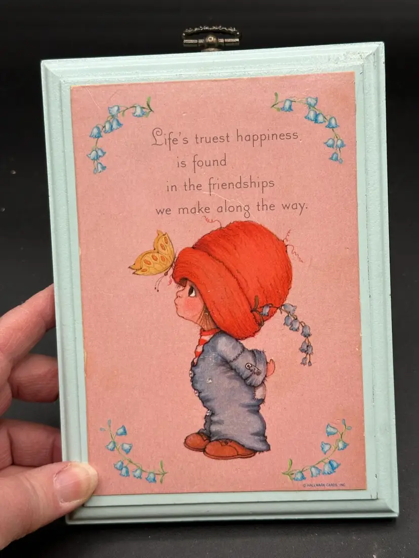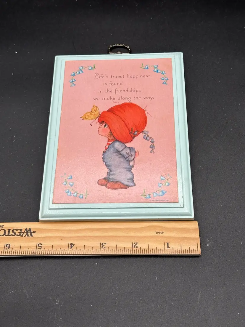 Vintage Hallmark Wall Plaque Friendship Blue Wood Girl Cartoon 70s 80s Style