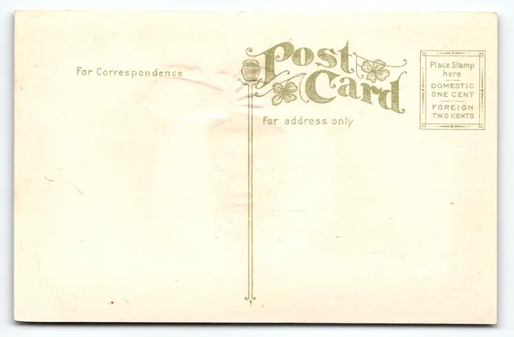 Printed as a lithograph on paper, this postcard is a classic example of an original divided back card from the 1907-1915 era. The divided back format allows for a message and address on the reverse, with a designated stamp box indicating postage rates of one cent domestic and two cents foreign. The card measures the standard size of approximately 5.5 x 3.5 inches. This piece captures the nostalgic charm of early Halloween ephemera, making it a desirable collectible for enthusiasts of vintage holiday postcards and antique prints.