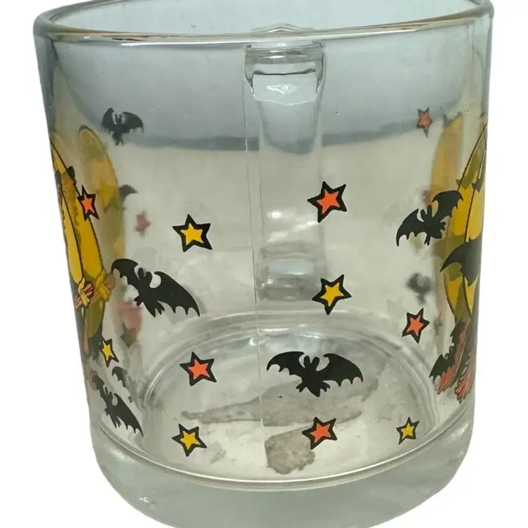 very good vintage condition no chips or cracks graphics are in great shape. 3.75" tall 3" diameter, good sized mug