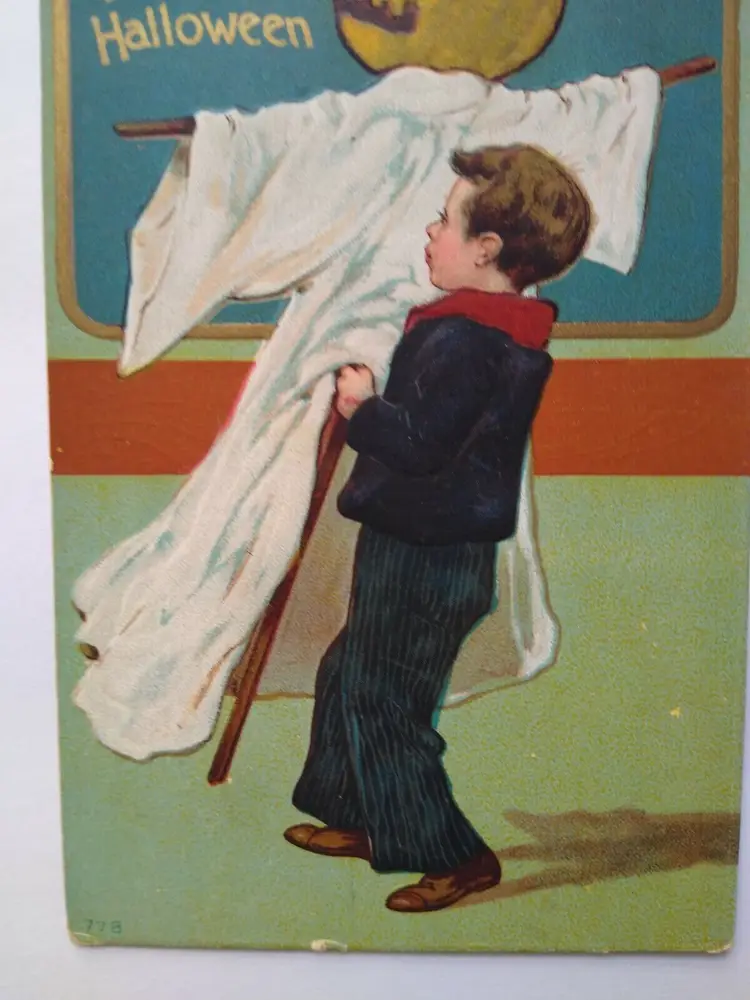 Antique vintage original Halloween postcard. Front has series 778. Embossed graphics. Crisp graphics with light corner/edge wear. Back shows spotting and browning to edges. See photos. Stock #368. Bundle and save by using the cart. Unit of Sale: Single Unit Era: Pre-War (Pre-1914) Original/Licensed Reprint: Original Occasion: Halloween Postage Condition: No Subject: Artist Material: Paper Theme: Fantasy, Art, Holiday, Greetings Time Period Manufactured: 1900-1919 Type: Printed (Lithograph) Features: Divided Back, Embossed Artist: Unknown Custom Bundle: No Size: Standard (5.5 x 3.5 in) Country/Region of Manufacture: Unknown Brand/Publisher: Unknown Number of Items in Set: 1 Year Manufactured: 1910 Antique: Halloween Vintage: Halloween Postcard Original: Postcard