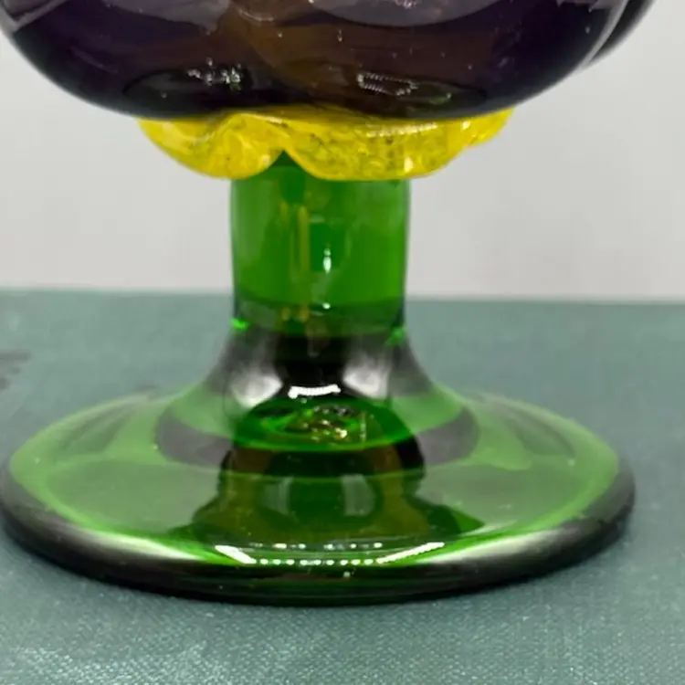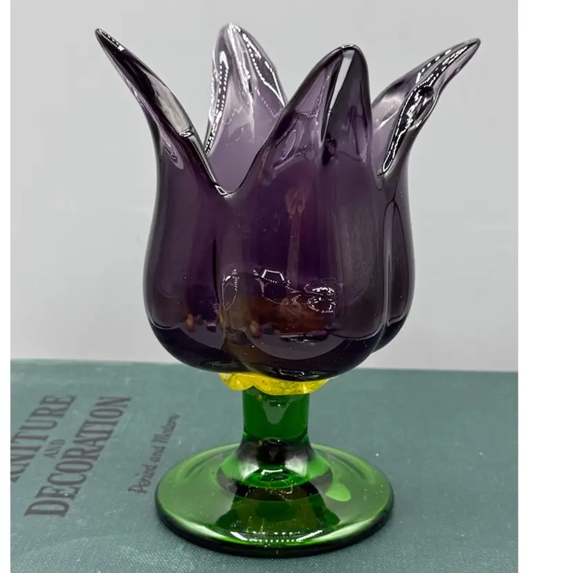 Its organic, floral-inspired silhouette is achieved through traditional hand-blowing techniques, resulting in unique petal shapes and minor air bubbles that highlight its artisanal origin. Excellent condition no chips or cracks