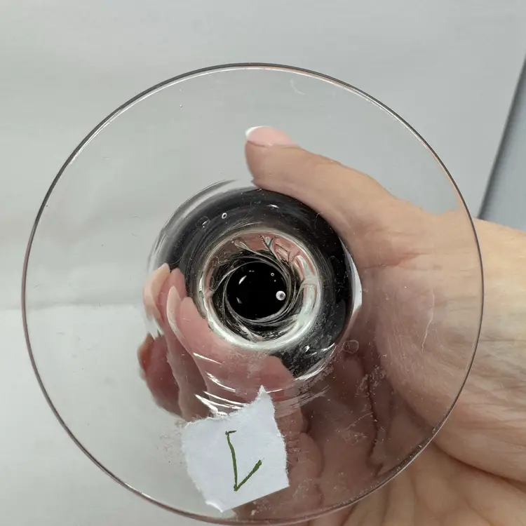 Vintage hand-blown amethyst glass bud vase with a clear twisted stem