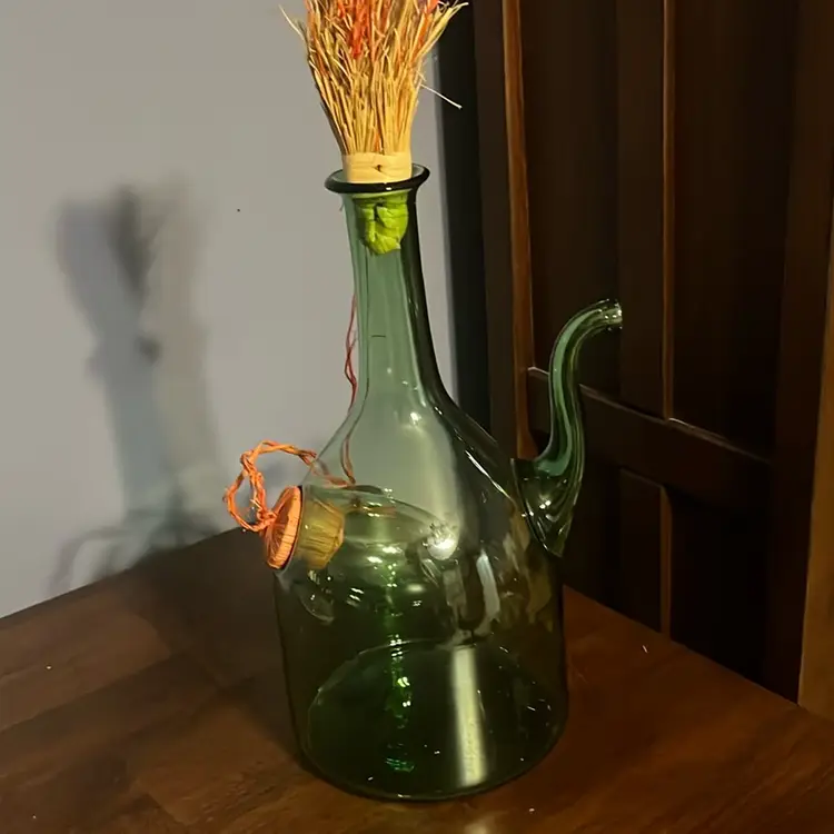 Hand-blown glass vessels, particularly those with unique designs like ice chambers, have a long history of craftsmanship. Italy, especially regions like Murano, has been a center for glassmaking for centuries, producing exquisite decorative and functional pieces. These types of decanters were often used for serving wine or spirits, with the ice chamber allowing for chilling without dilution.
