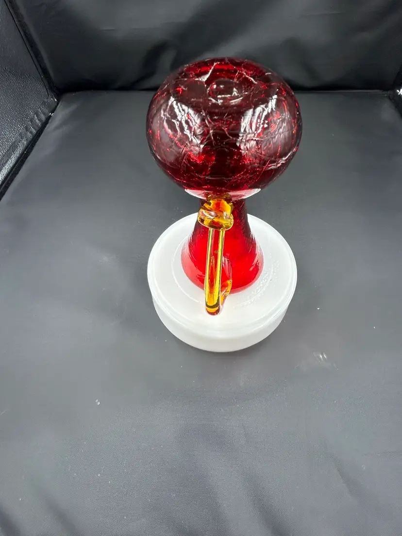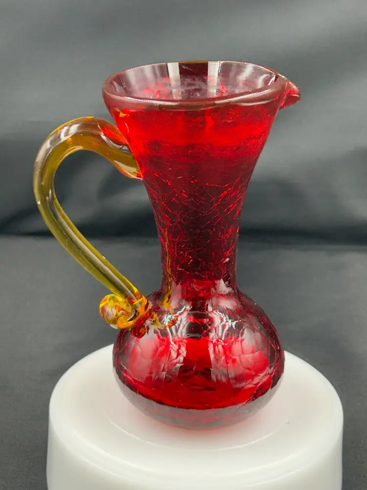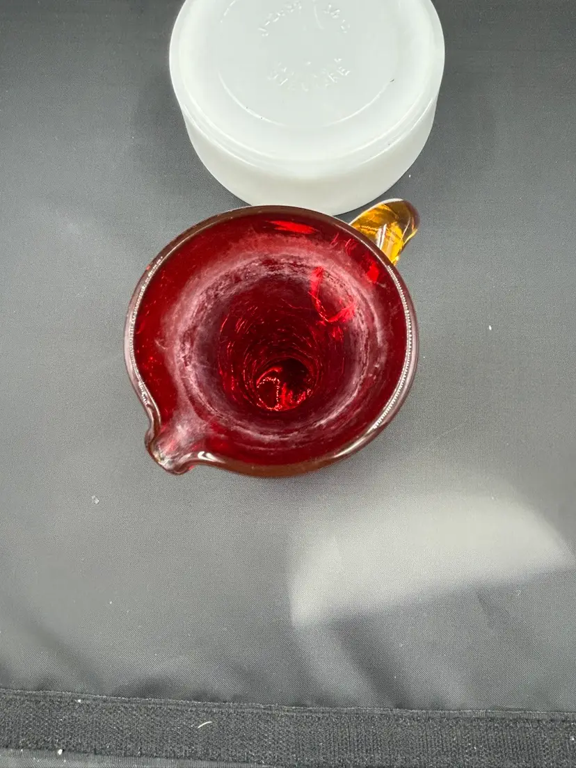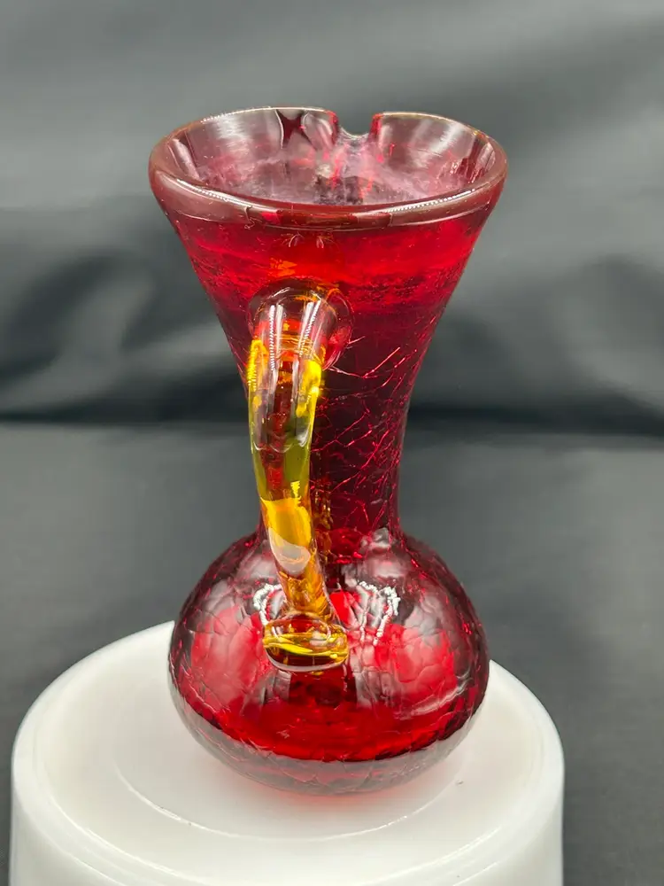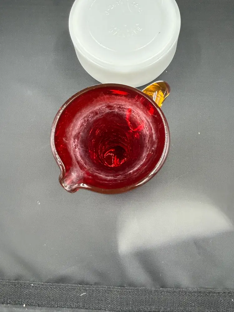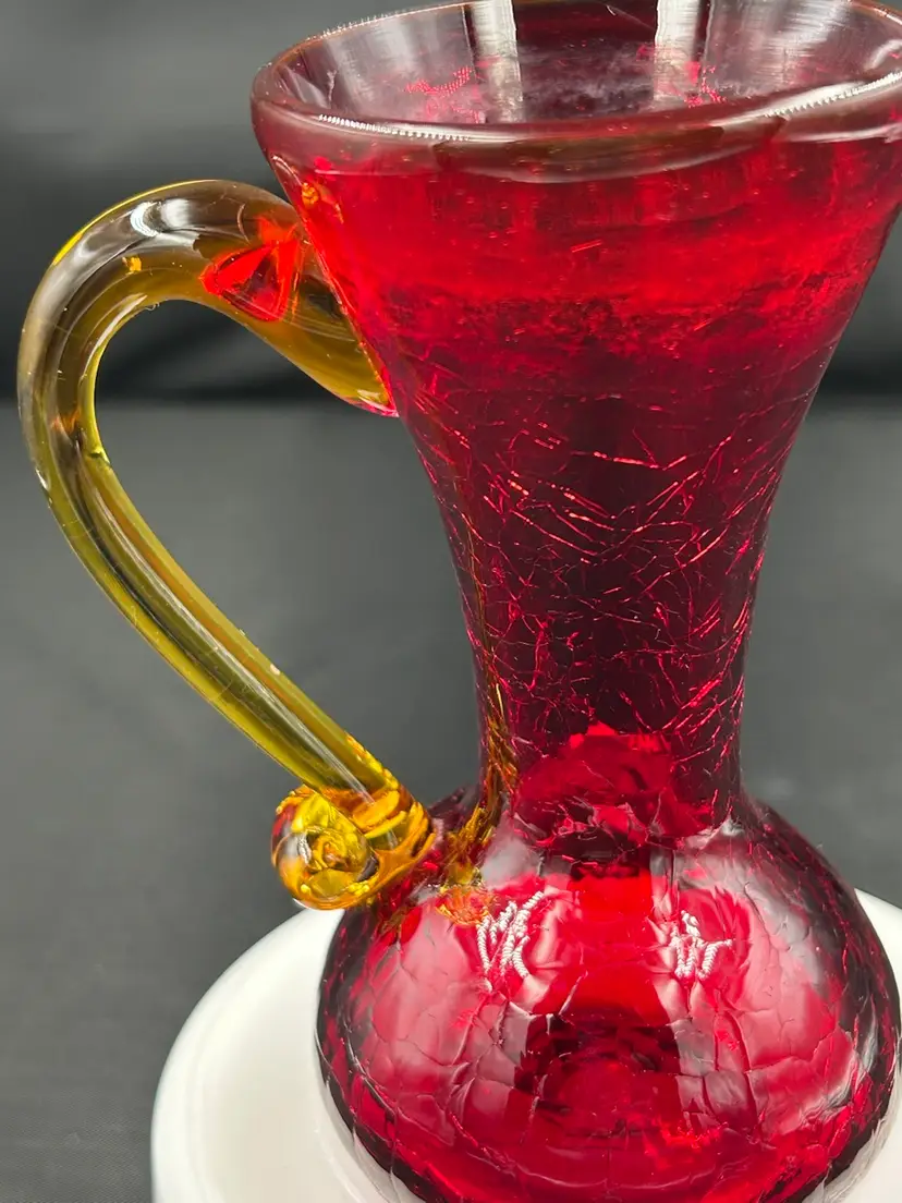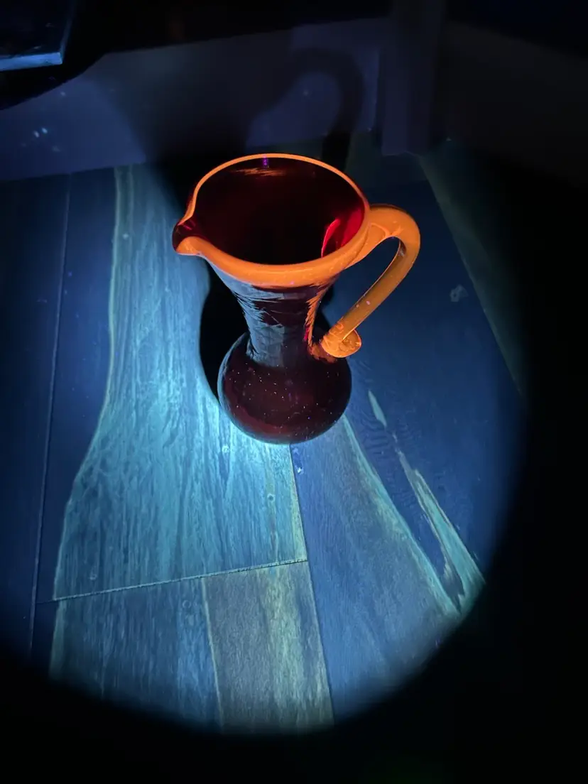Has water staining around rim, no chips or cracks. Glows orange with UV light. 5.25 H x 4L x 2.75 W