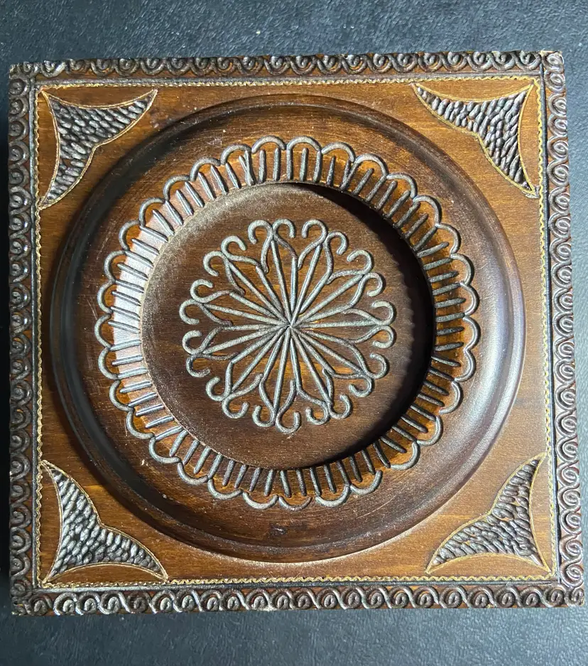 Vintage Hand Carved Wooden Box Made in Poland, 4.75" x 4.75"