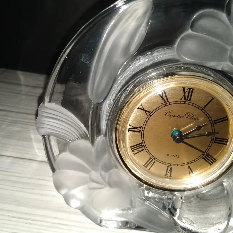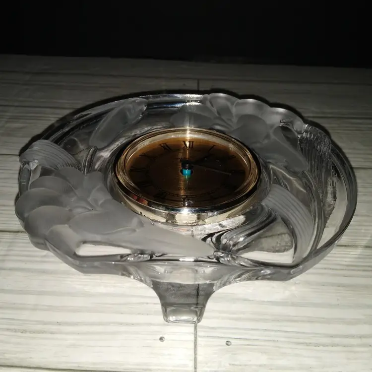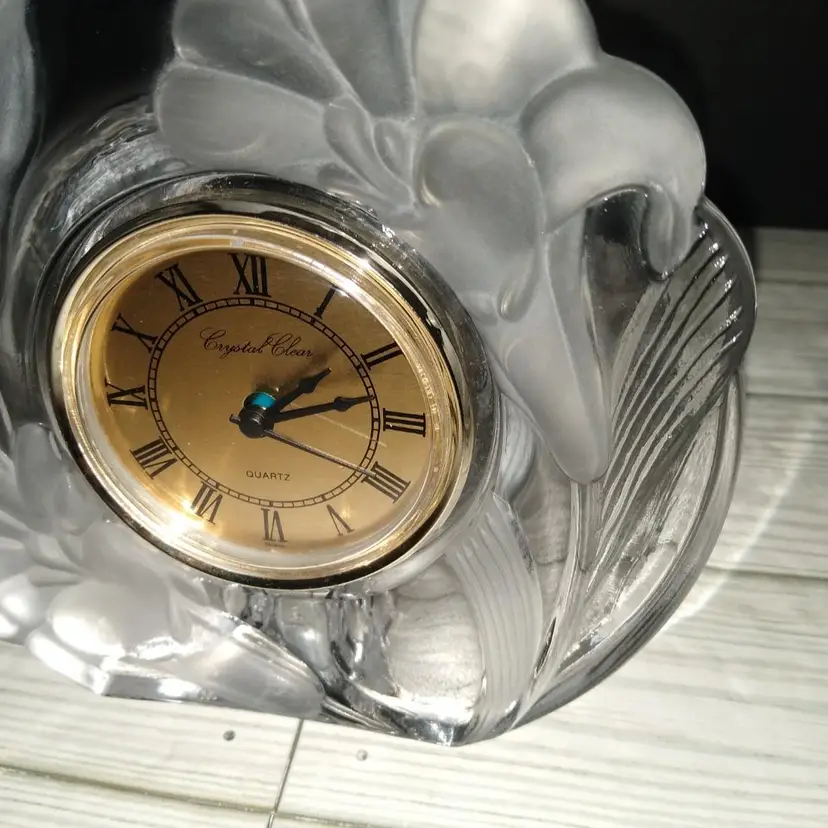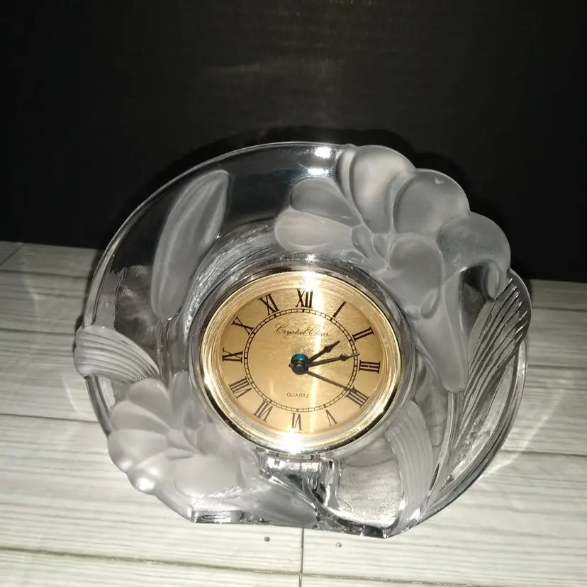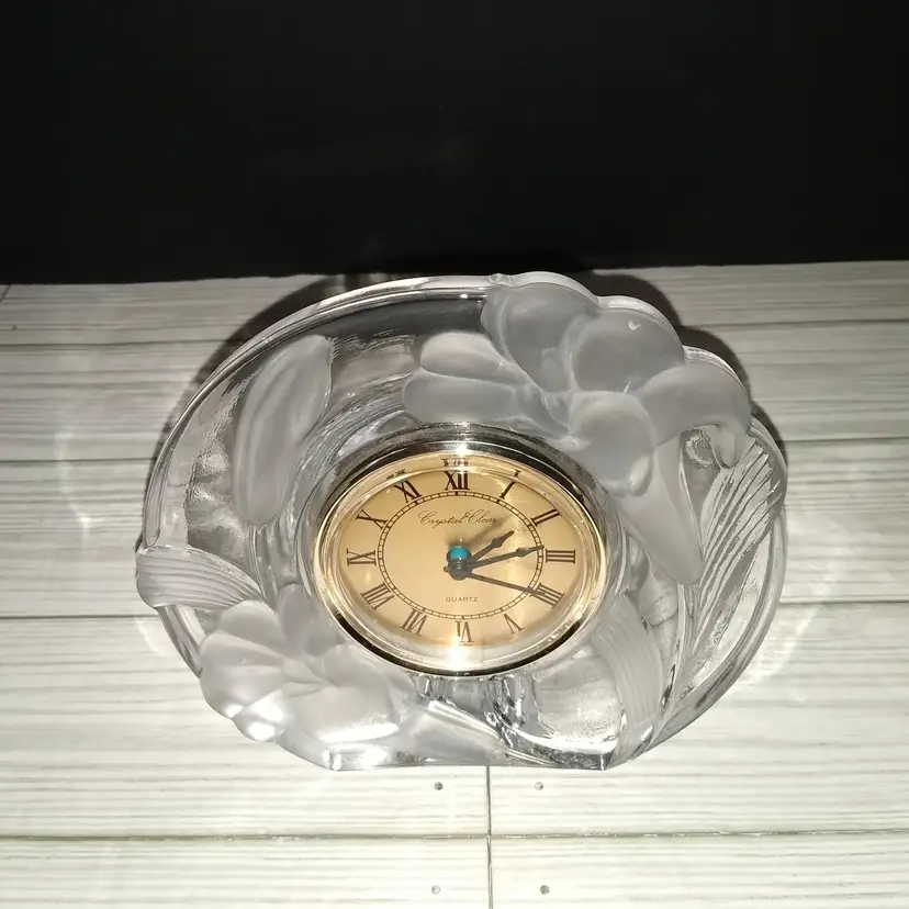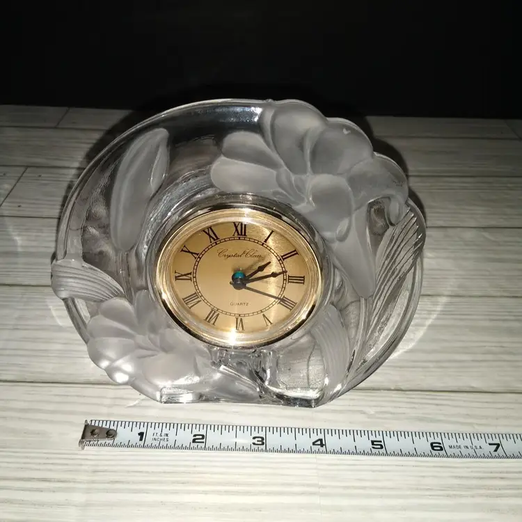 Vintage Hand Crafted Crystal Clear Studios Frosted Quartz Clock Mantel Table Top. Untested. Has some wear from age and storage. Sold as is.