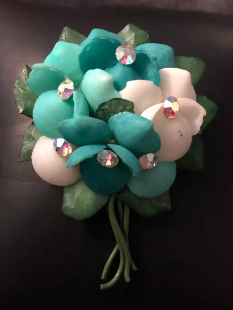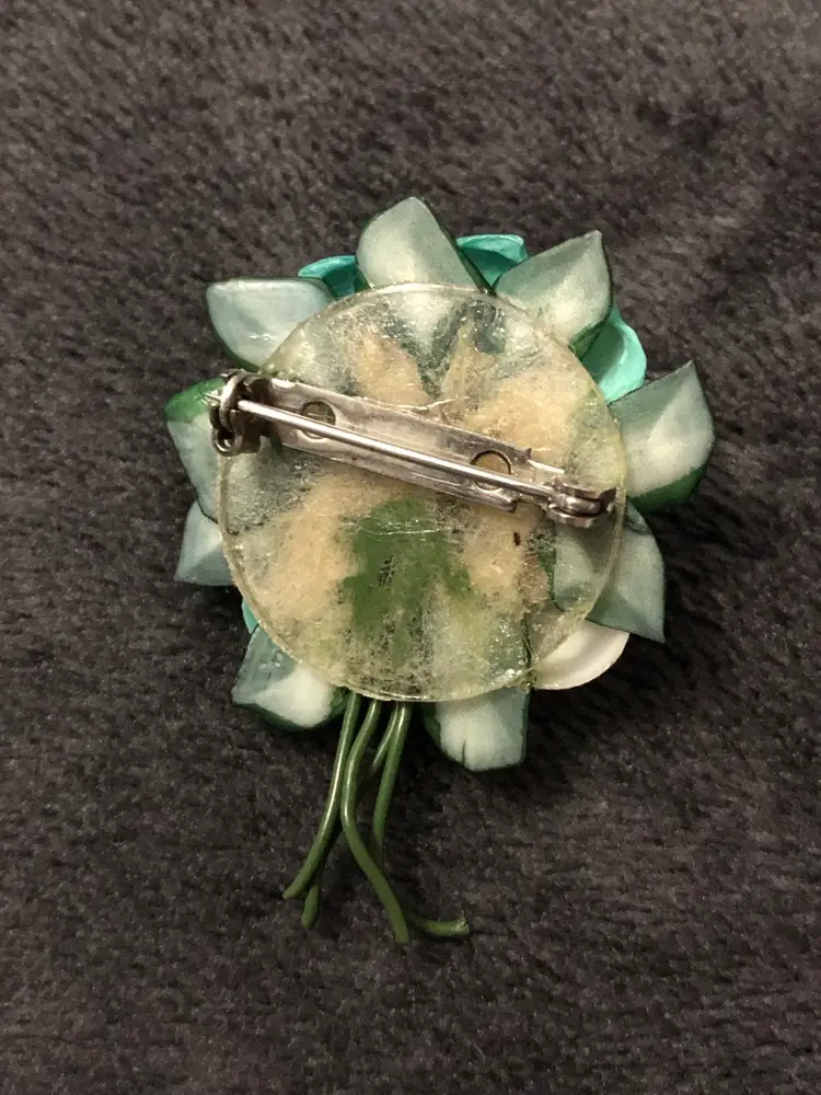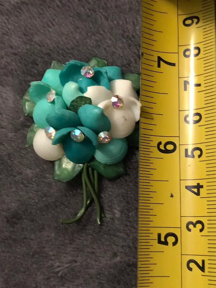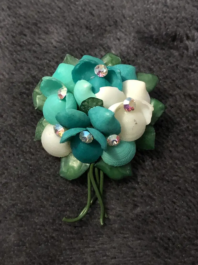 Has some minor chipping to some of the shells Has beautiful Aurora Borealis jewels on it Very unique and pretty brooch