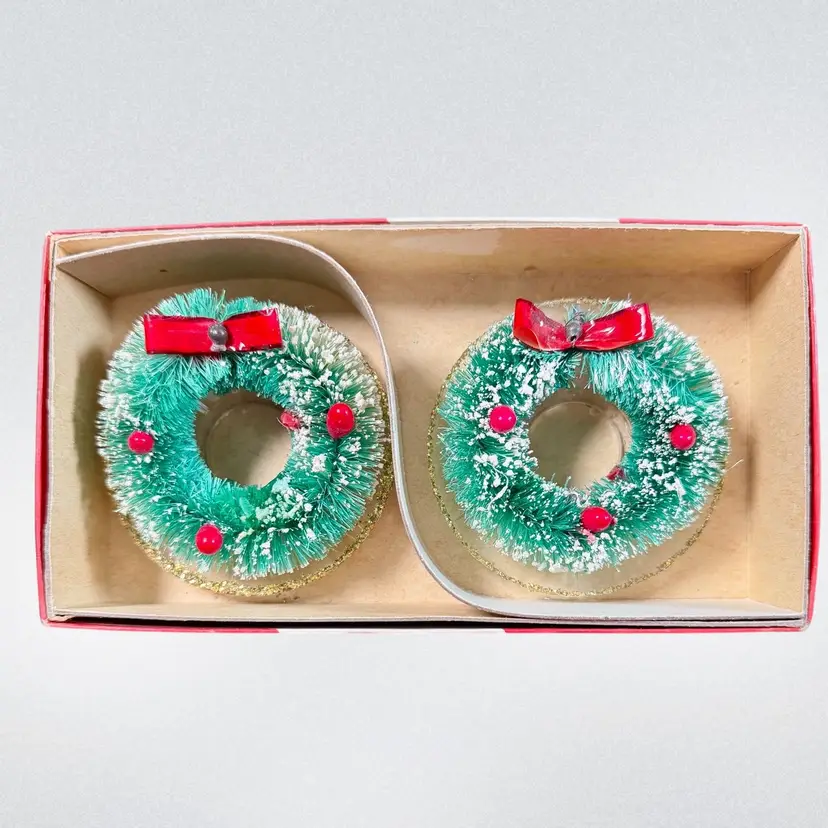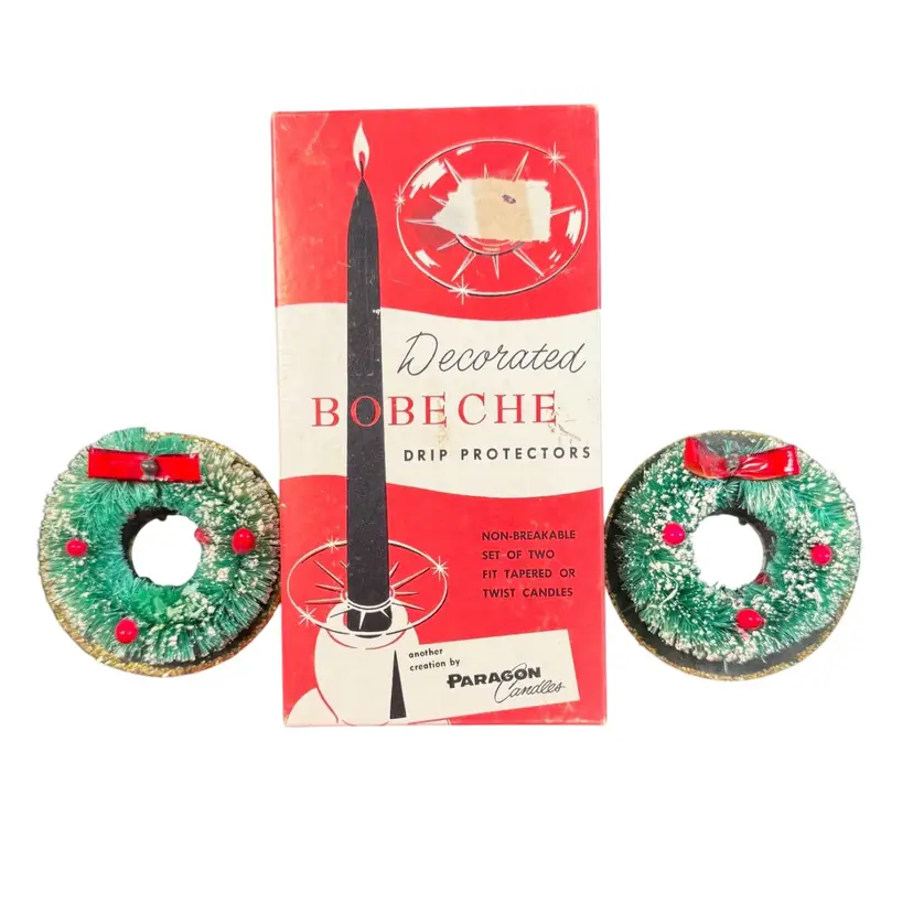 The wreaths and gold accents were added to these drip protectors. Comes with original box.