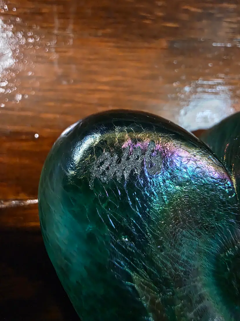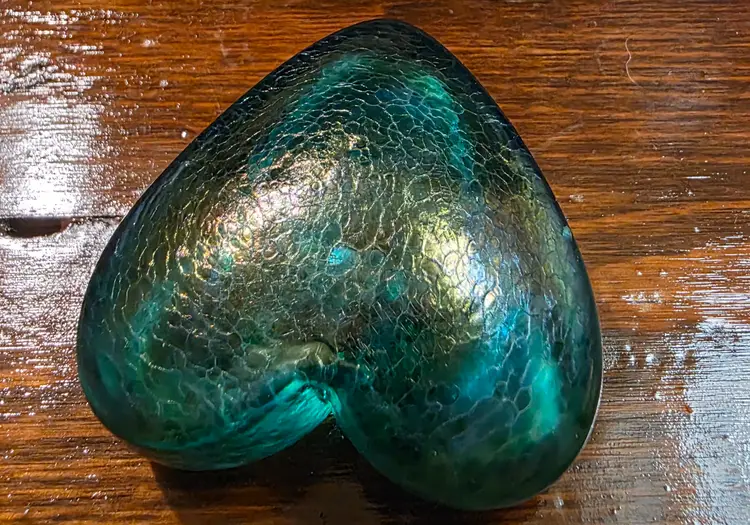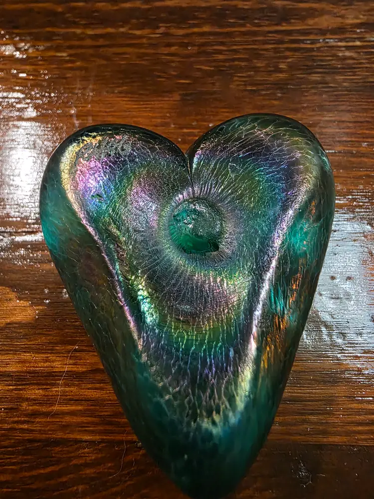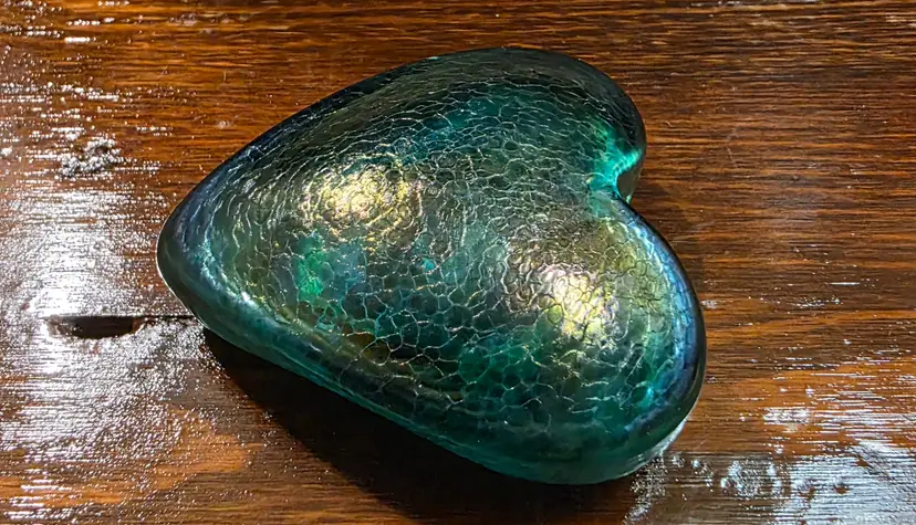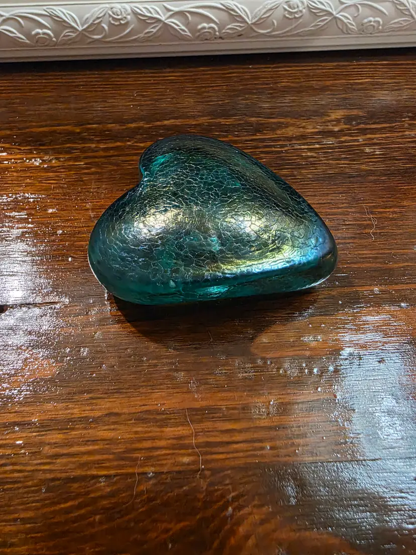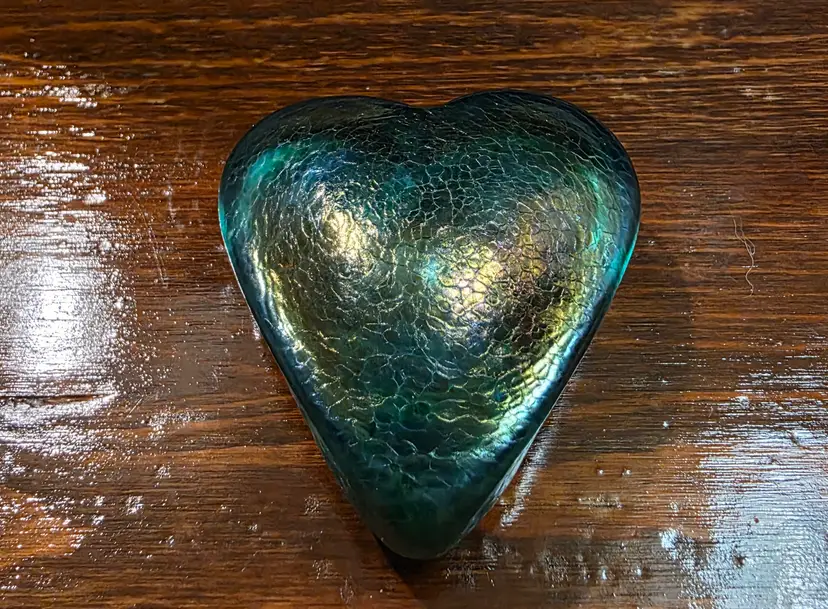 Vintage Hand Made in Canada Signed Robert Held Green Glass Heart Paperweight. Paperweight is in excellent condition with no chips or cracks and is approximately 2 inches width and 2.5 inches length and approximately 1 inch thick. Very nice looking collective piece Signed by Artist. Piece is Green in color and has a smooth texture, but top of of Heart has a cracked glass texture.