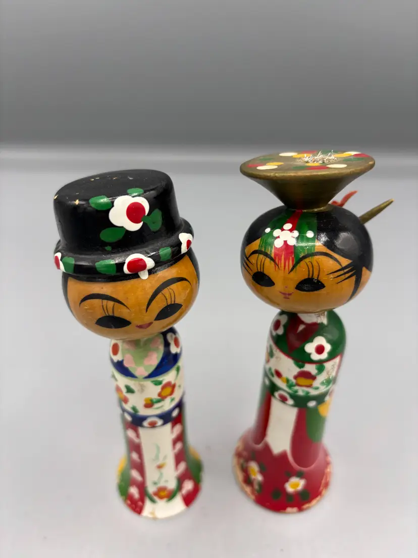 Vintage hand painted Asian bobblehead figures that add a whimsical feel to any room. These show signs of wear refer to pictures for details.