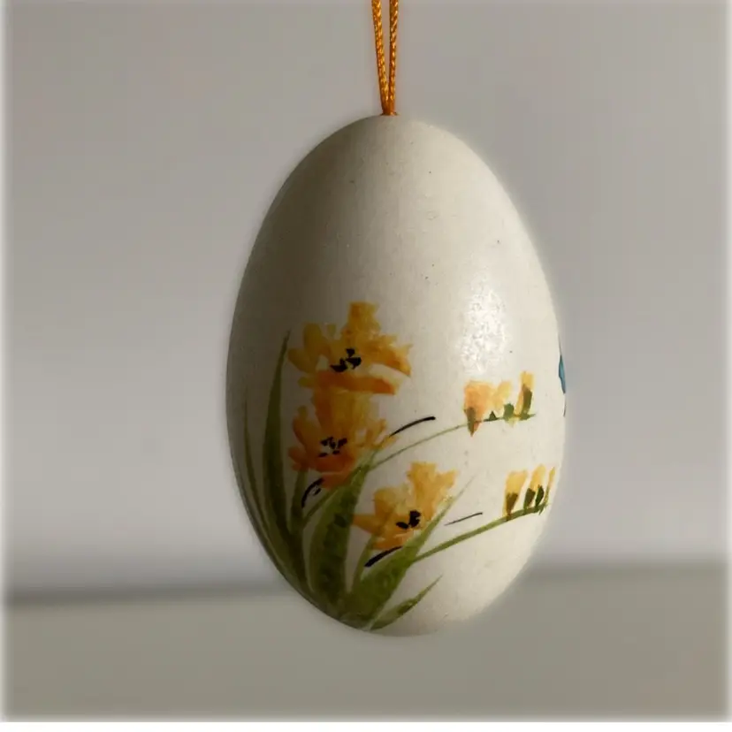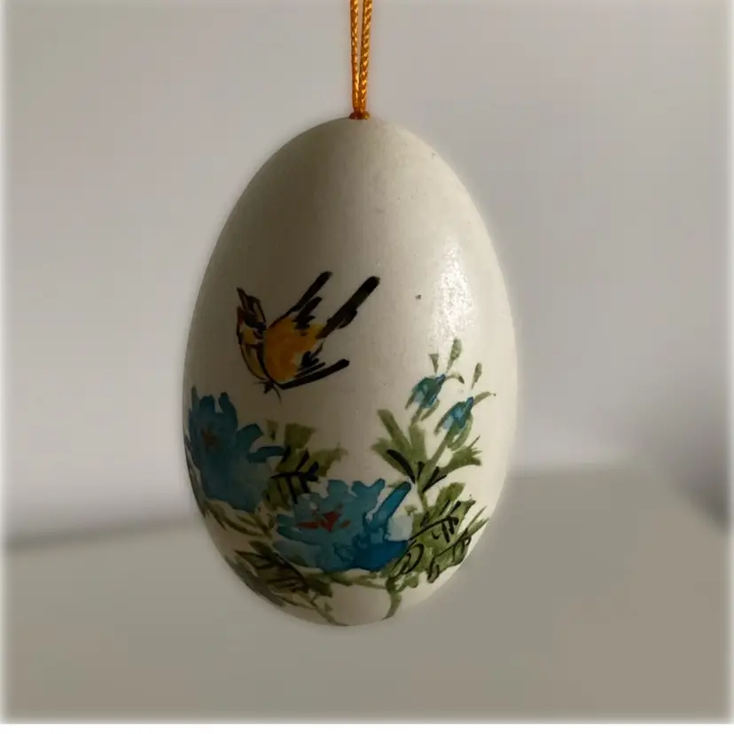 Vintage hand painted egg with abird and flowers. Made in Japan.