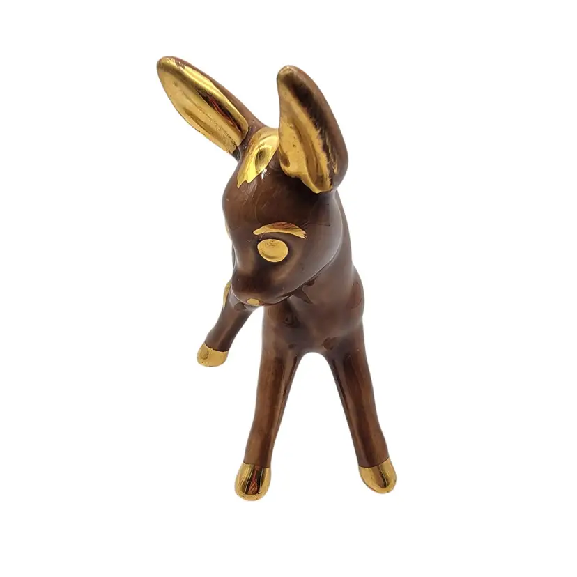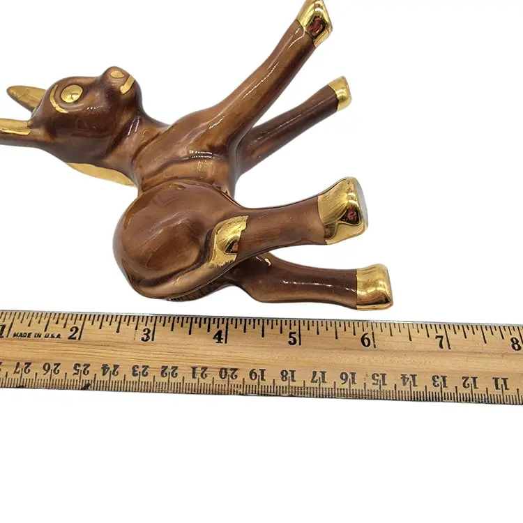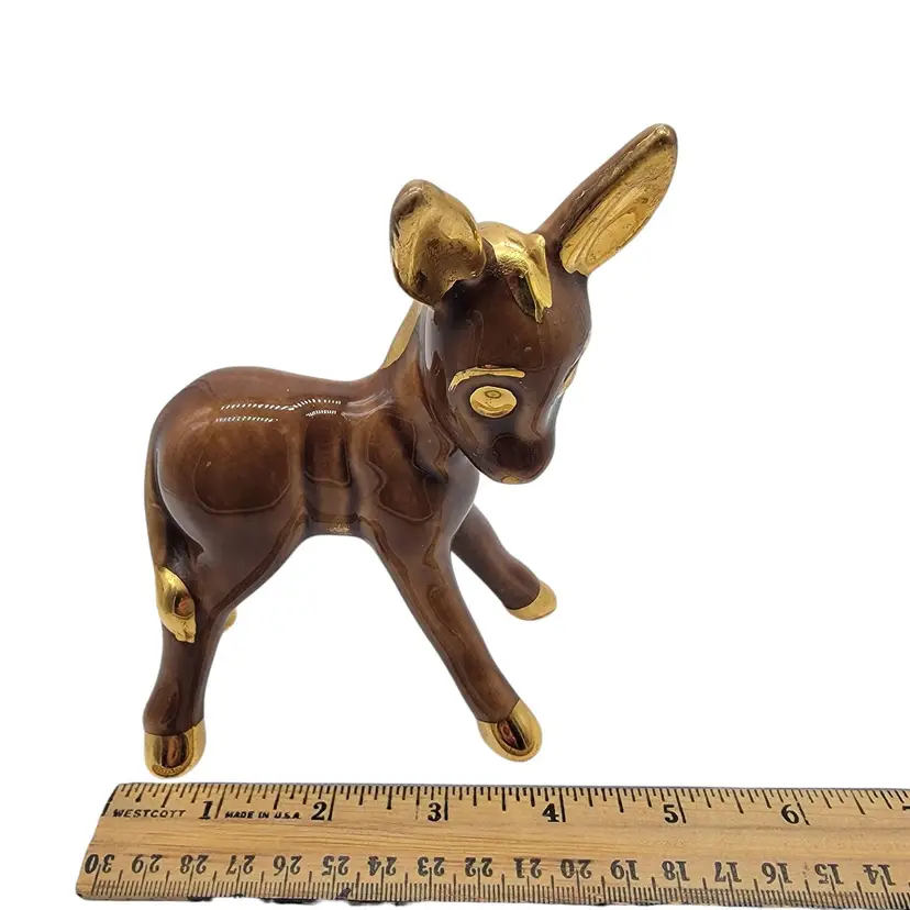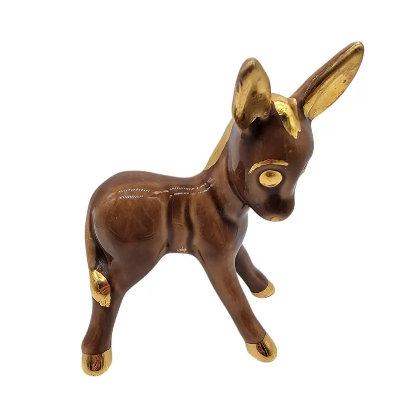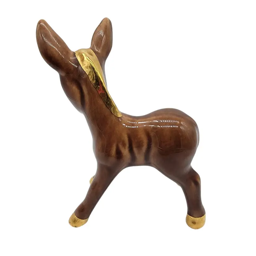 This charming vintage ceramic donkey figurine is adorned with elegant gold accents, adding a touch of whimsy and sophistication to any collection.
