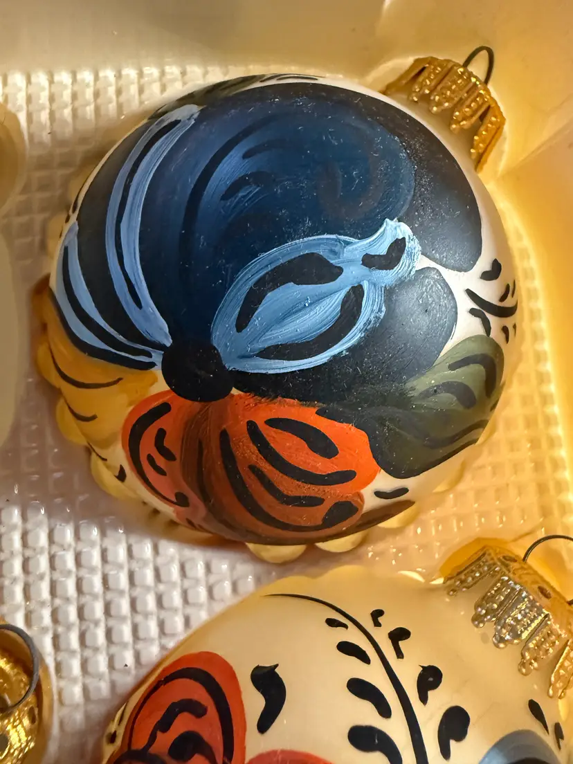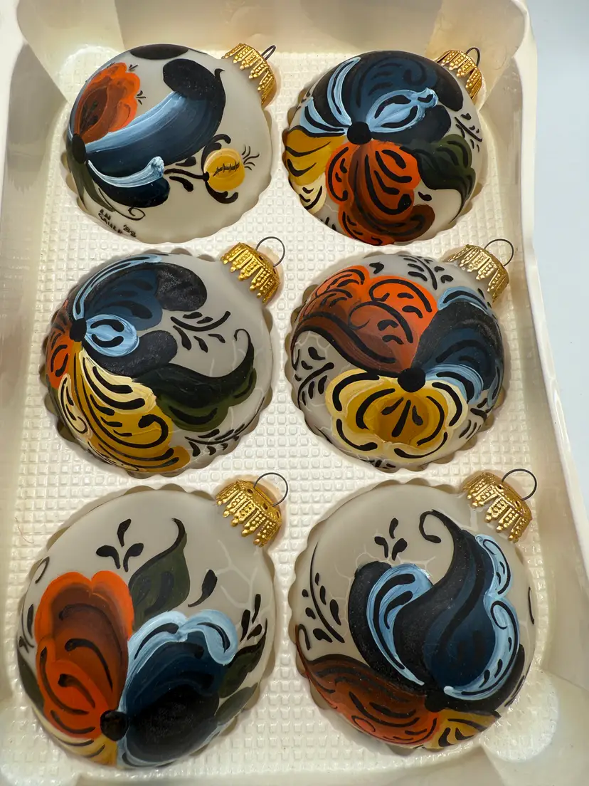Vintage Hand Painted Glass Christmas Ornament Bulbs (6 total) by LN Gauer 1988