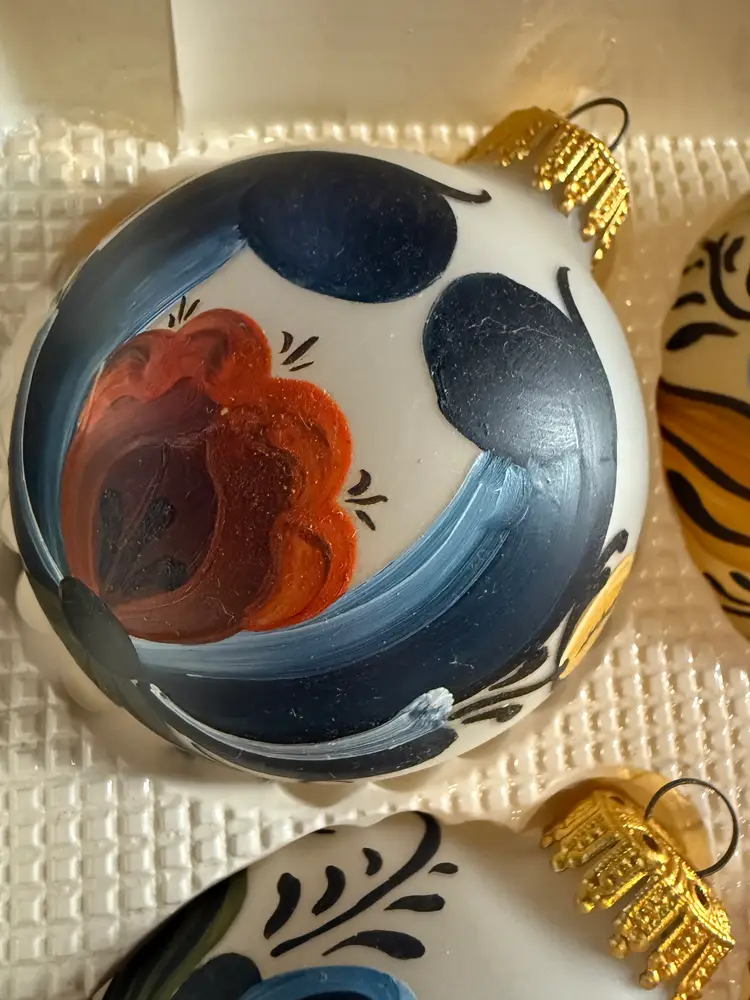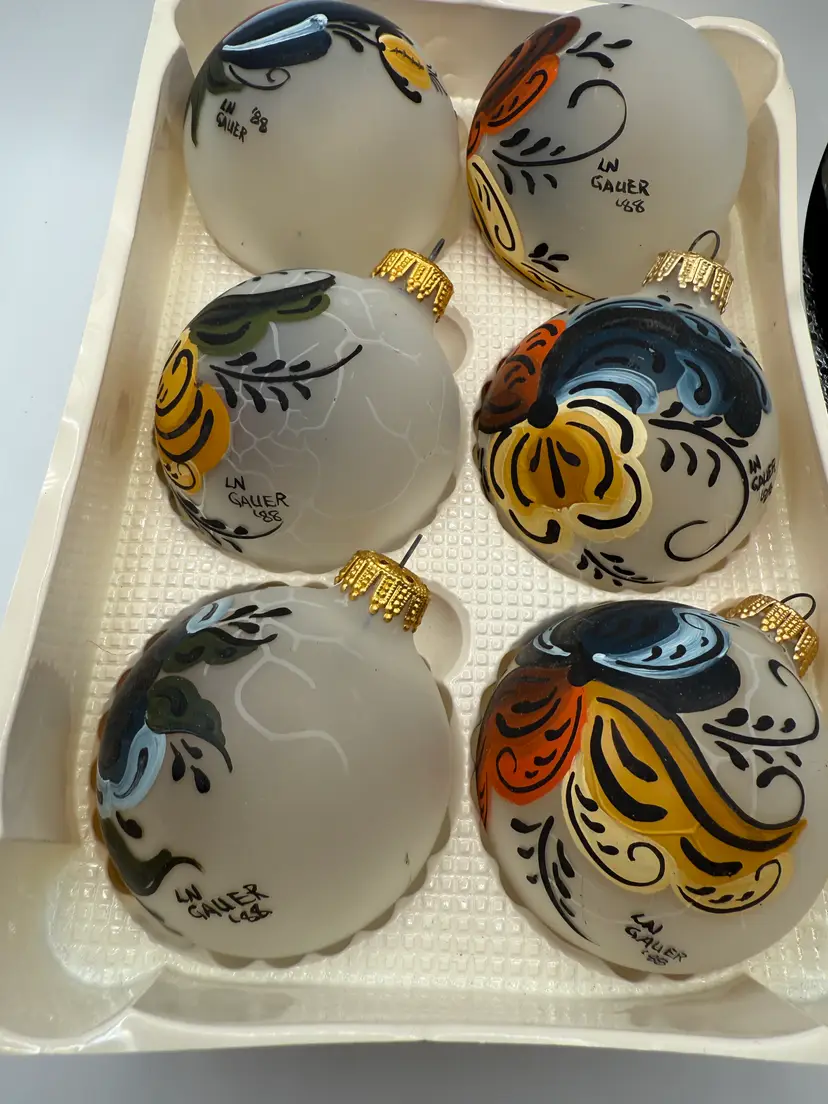 In used condition with no chips or cracks. May show signs of wear, please refer to photos for condition. Hand Painted vintage Christmas ornaments handpainted and signed LN Gauer 1988.