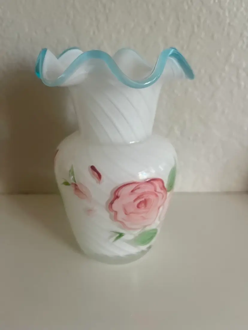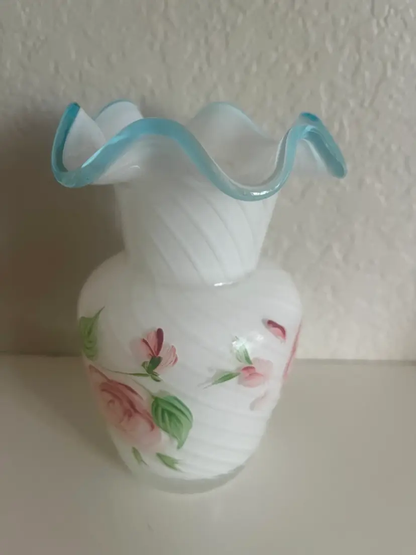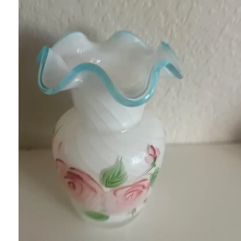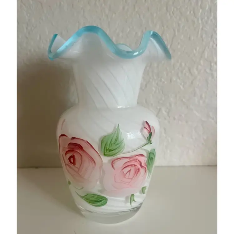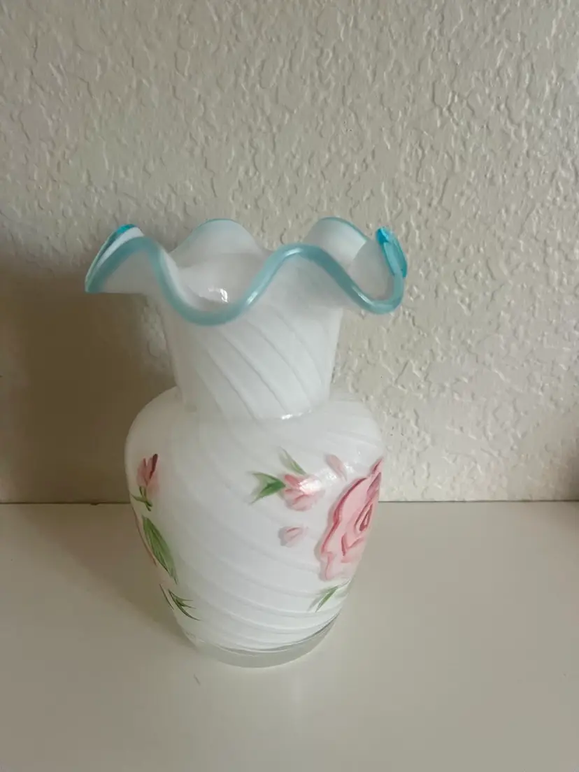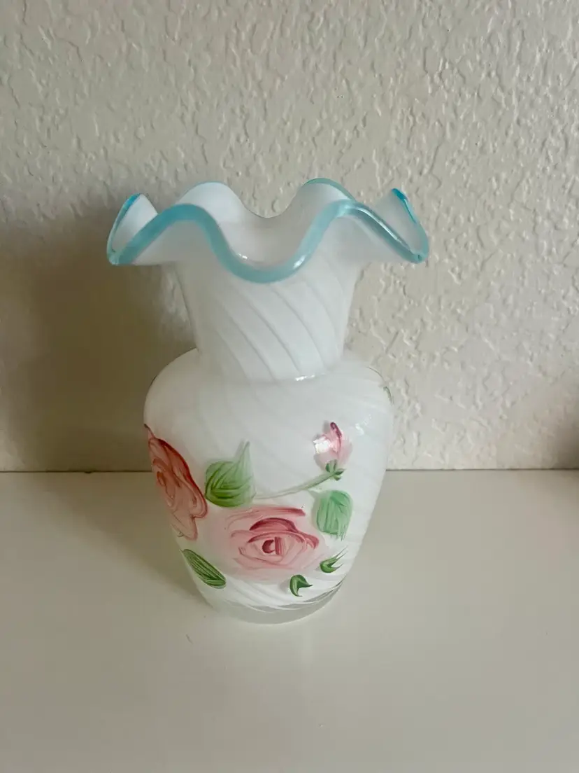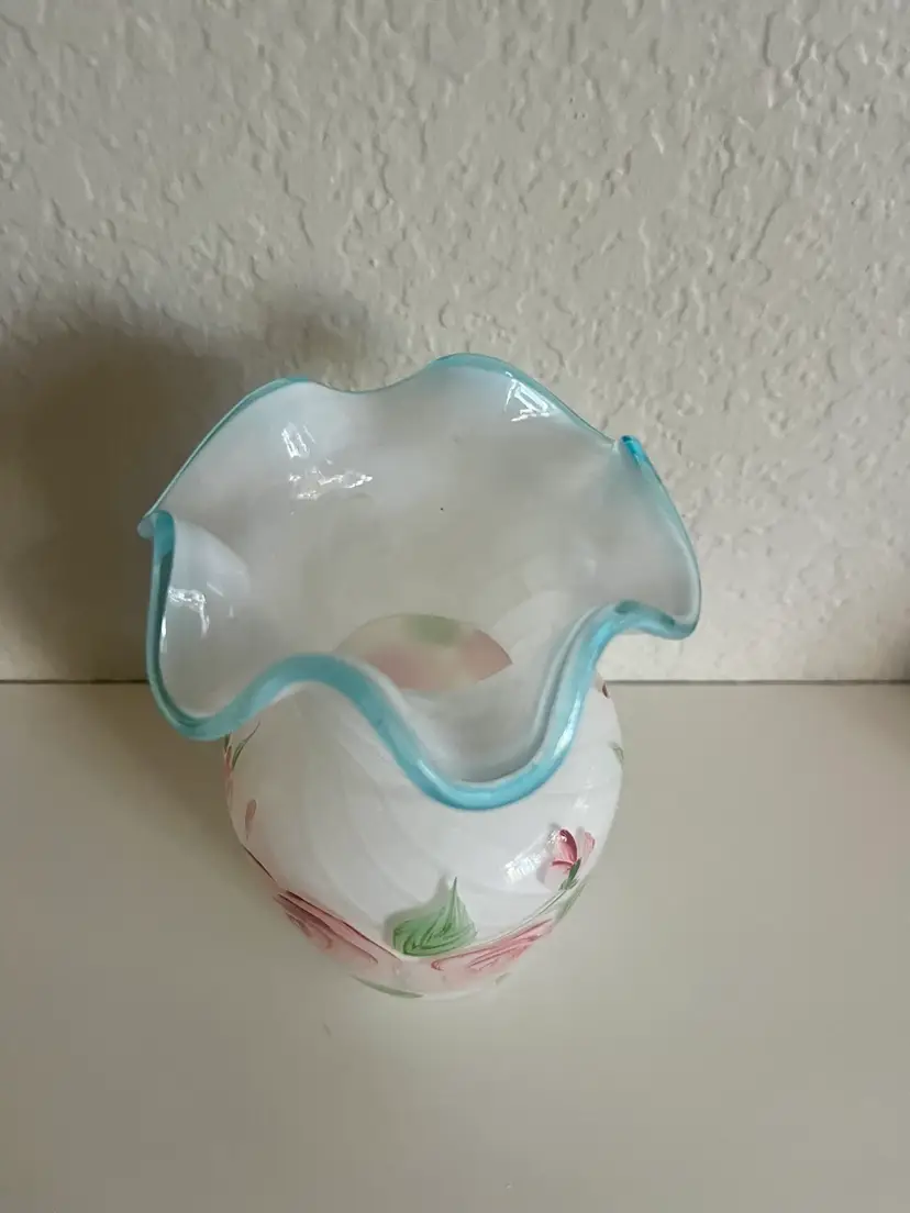 Beautiful hand painted floral pastel Fenton glass vase. 6” height. Excellent condition with no chips or cracks.