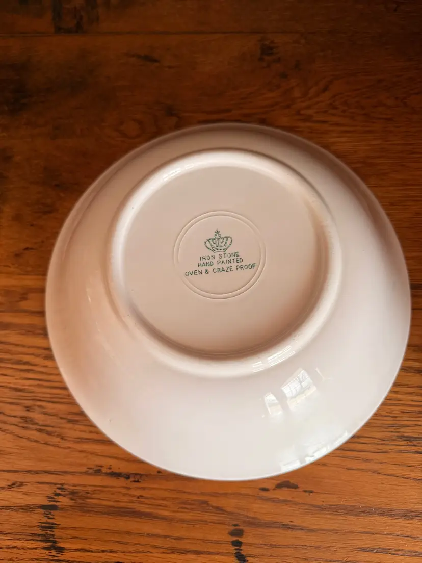 “IRON STONE – HAND PAINTED – OVEN & CRAZE PROOF.”