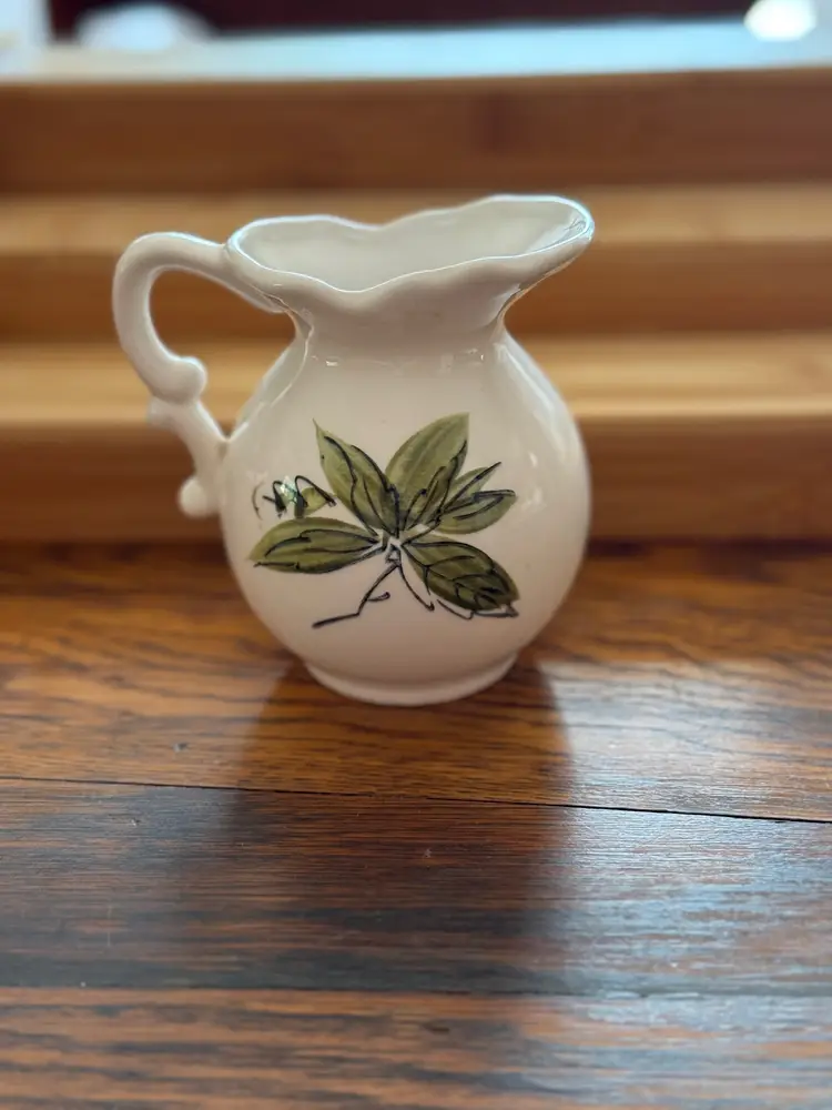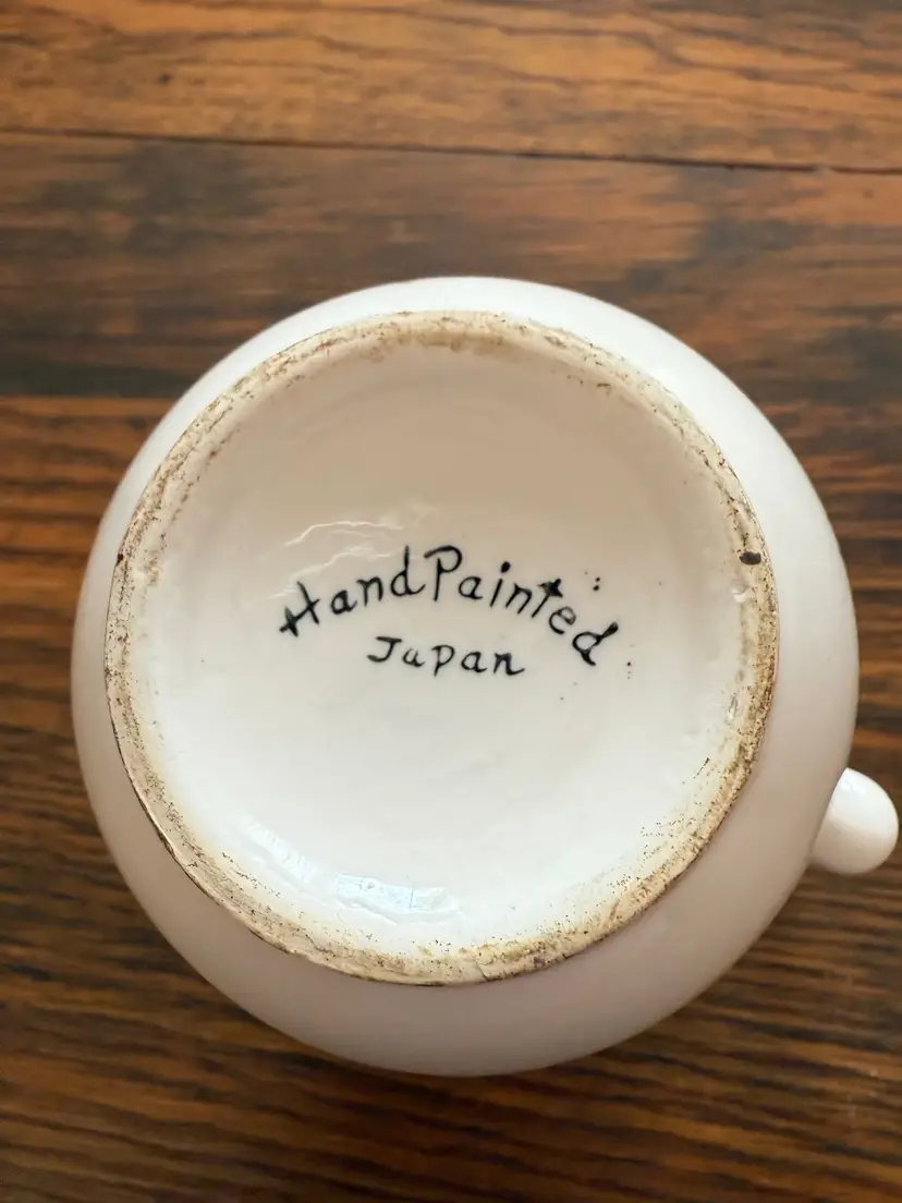 Perfect for display, floral arrangements, or as a petite creamer, this ceramic piece stands 4 inches tall and is marked “Hand Painted Japan” on the base.