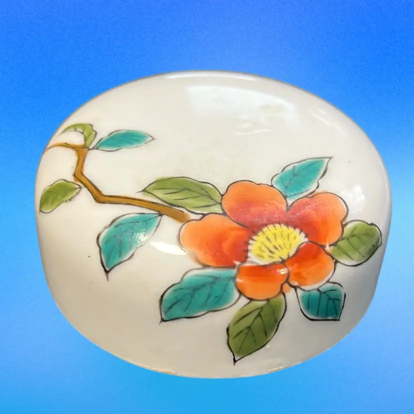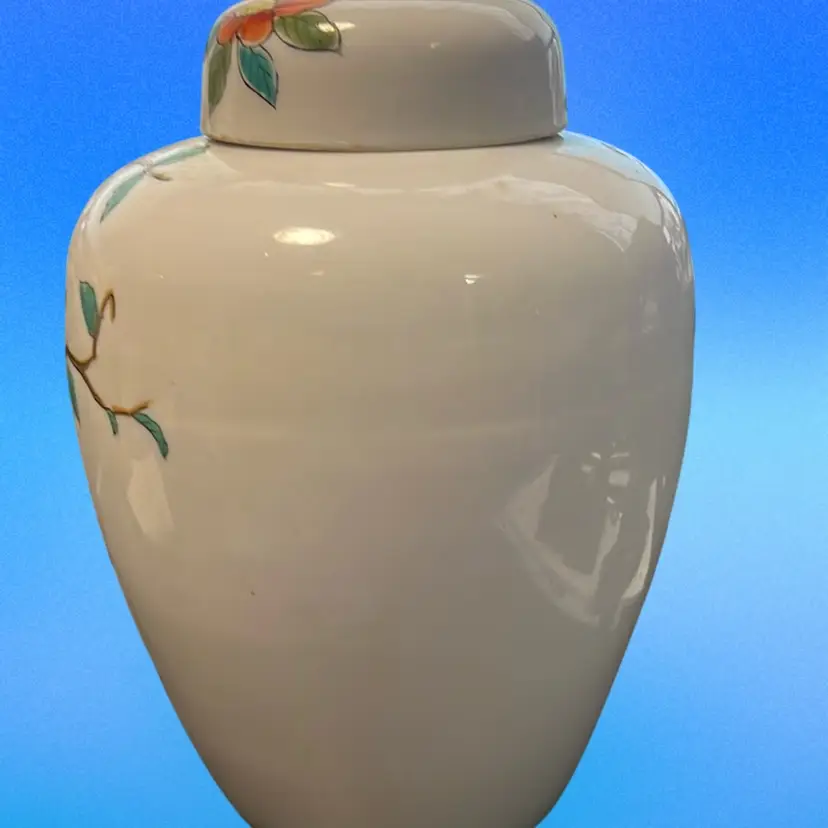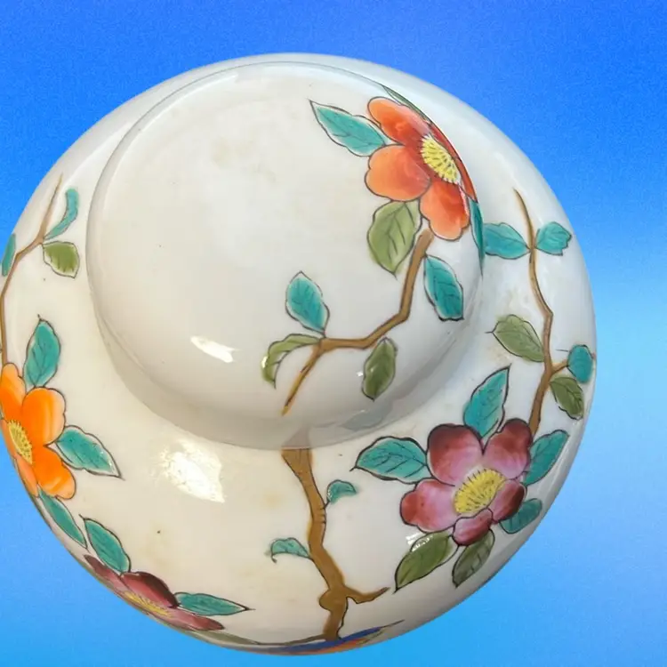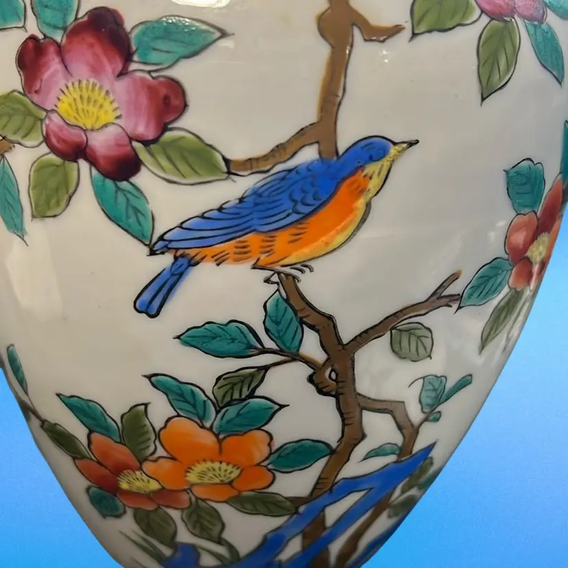 Vintage hand-painted Japanese porcelain ginger jar with floral and bird motif. 7” Tall With Lid. Has A Bird On It 😊 Not Marked On Bottom.