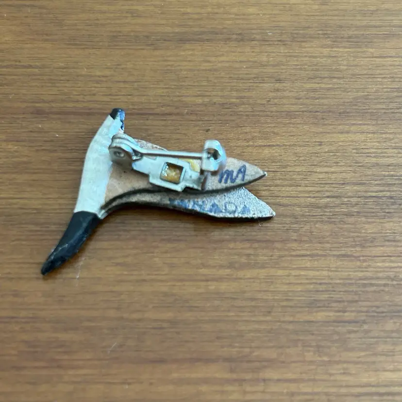 Vintage Hand Painted Leather Canadian Goose Brooch Pin Canada